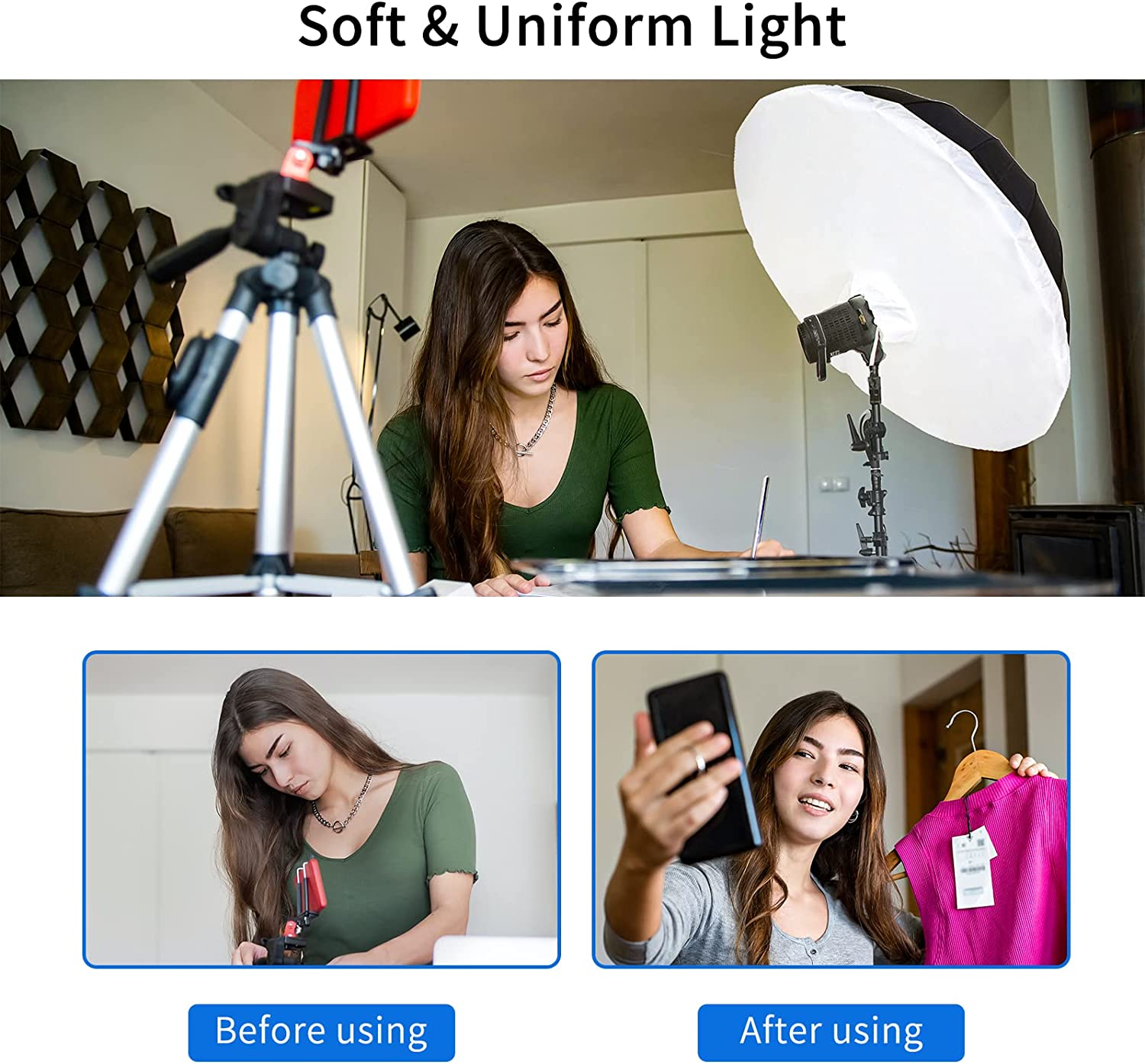 Идеально подходит для портретной, фотосъемки, групповой съемки или сценариев, где вам нужен широкий результат освещения