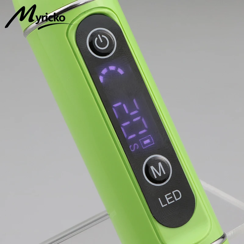 Этот отверждающий свет имеет преимущества регулируемого рабочего времени, видимого рабочего времени и высокой эффективности отверждения. Когда лампа отверждения заряжается, гнездо зарядного устройства может отображать состояние зарядки. (Зарядка: индикатор горит, зарядка закончилась: индикатор не горит. Отверждающая лампа удаляется из зарядного гнезда: Световой индикатор начинает мигать). Когда эта машина работает, каждые 5 секунд зуммер издает звук «Ди», чтобы напомнить вам, в то же время на экране отображается оставшееся время работы. В нерабочее время эта машина может автоматически отключаться без каких-либо операций в течение 120 секунд для экономии электроэнергии. Когда эта машина выключена, нажмите любую кнопку, чтобы включить свет отверждения.