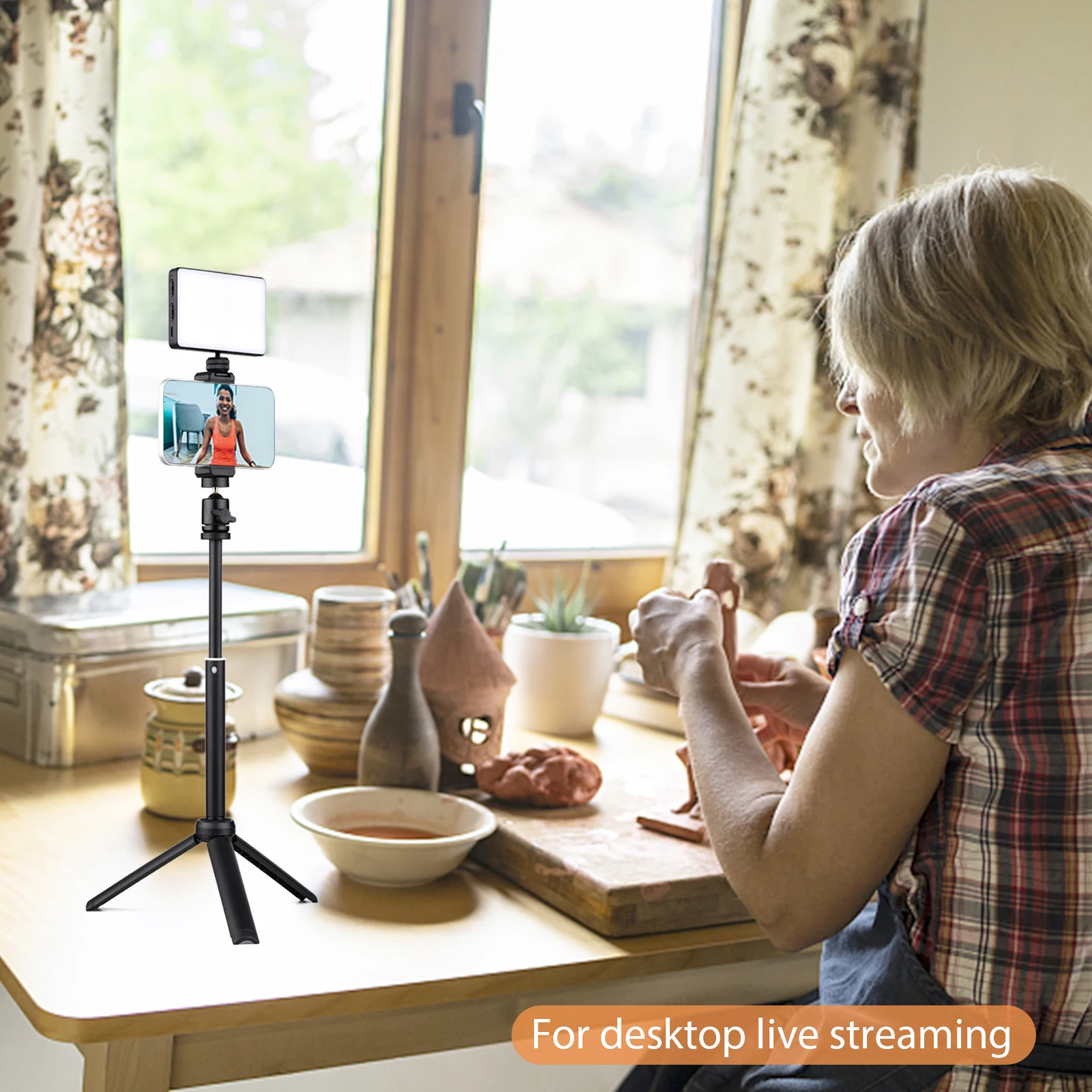 Различные аксессуары и различные способы использования:Поставляется с регулируемым настольным штативом, вращающейся шаровой головкой, держателем для телефона, зажимом для компьютера и адаптером для холодного шоу, чтобы помочь вам достичь большего количества способов использования. Вы можете использовать RGB видео светильник с DSLR камерой, смартфоном и компьютером, подходит для мобильного vlog, потокового видео, видео конференции и т. Д.