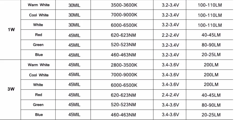 Светодиодный светильник высокой мощности, 10 шт., 1 Вт, чистый белый/теплый белый, 300 мА, 3,2-3,4 в, 100-120лм, 30 мил