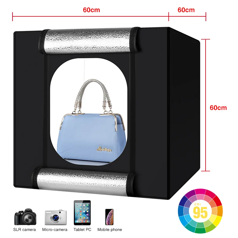 1. Простая и быстрая Складная светодиодная коробка/Студия, установка только 3S и сложена как Сумочка для переноски.