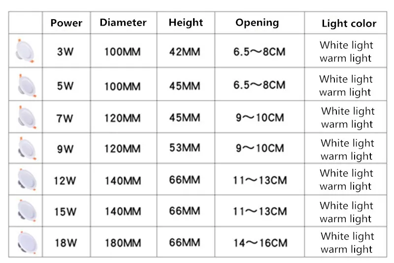 1. Доступное напряжение: AC200V-240V 2. Мощность: 3 Вт 5 Вт 7 Вт 9 Вт 12 Вт 15 Вт 18 Вт 3. Светодиодный Тип: SMD 2835 4. Материал: алюминий + акрил 5. Тип: светодиодный потолочный светильник, круглый светильник 6. Посылка включает в себя: 1 светодиодный светильник