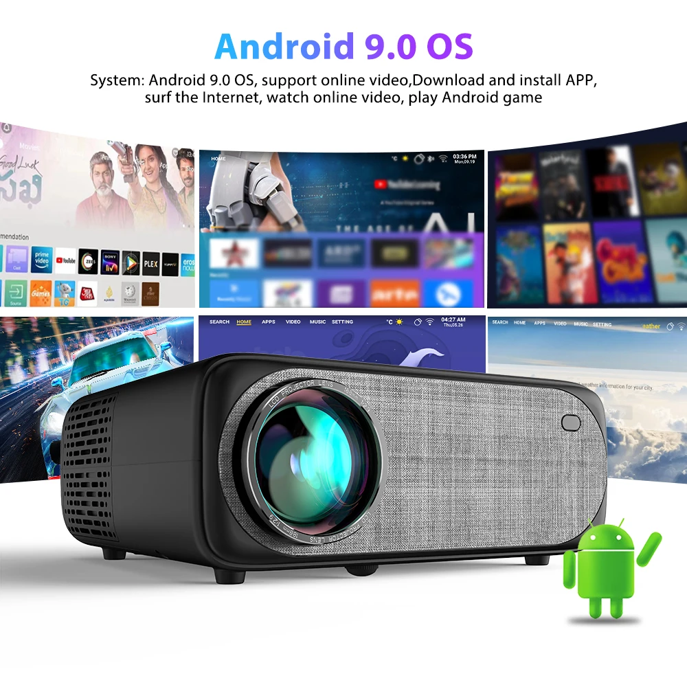 Проектор Full HD 1080P с усовершенствованной технологией, супер яркий светодиодный ЖК-дисплей, яркость 7800 люмен, высокая контрастность 15000:1 обеспечивает более широкую цветовую гамму и четкие изображения для просмотра фильмов в помещении и на открытом воздухе.