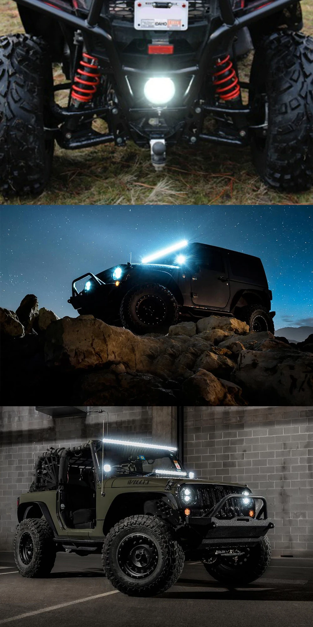 Для внедорожного освещения: подходит для внедорожников, UTV, ATV, Jeep, 4x4, 4WD, автомобилей, мотоциклов, грузовиков, прицепов, вилочных погрузчиков, поездов, лодок, автобусов, резервное копирование светильник и т. Д.