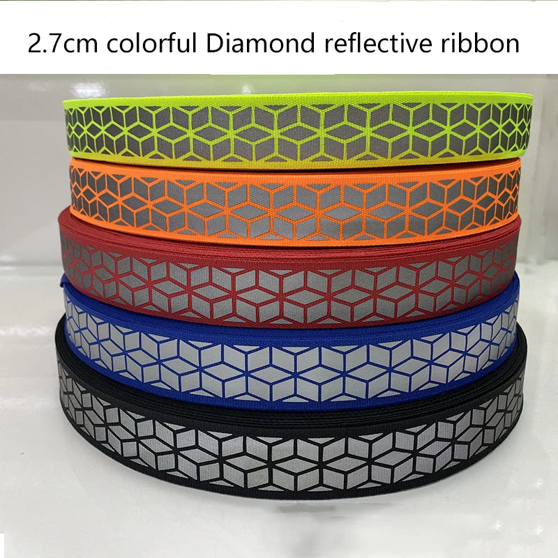 Светоотражающая голографическая ромбовидная лента, 2,7 см, ярко-серебристая декоративная лента «сделай сам» для ручного шитья Предупреждение метр