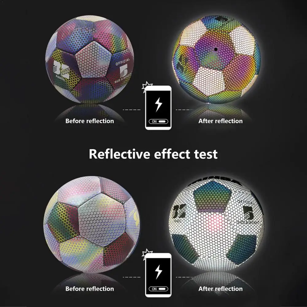 Светоотражающий футбольный мяч, светящийся ночью, для футбольных ночных игр и тренировок, светящийся в темноте, отражающий Композитный кожаный мяч