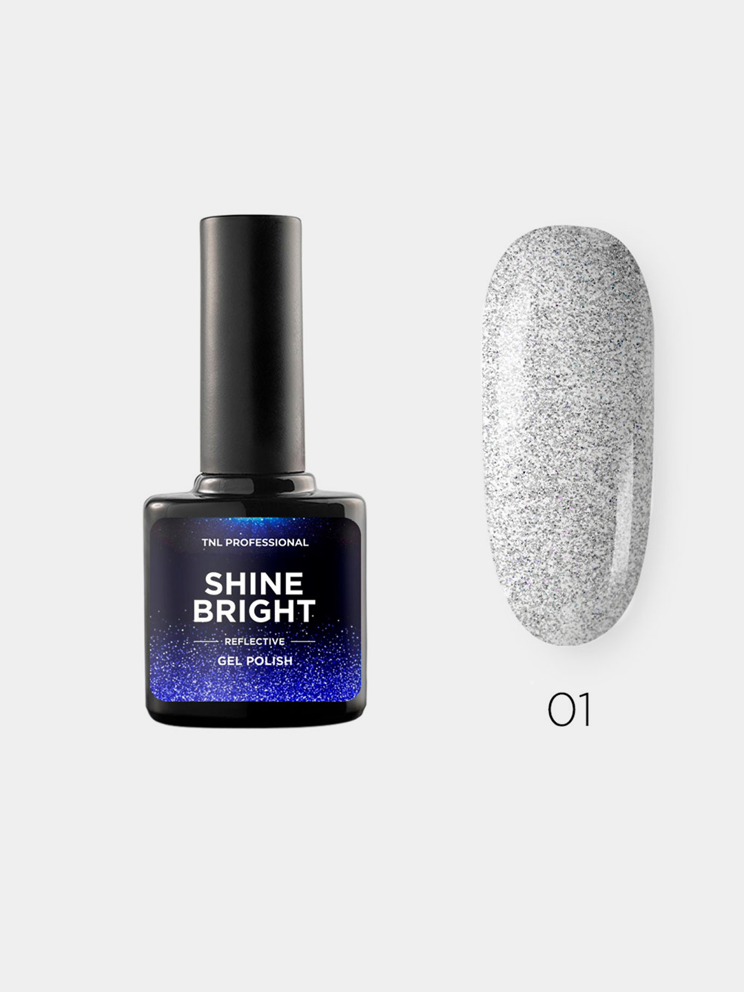 Светоотражающий гель лак для ногтей TNL Shine bright №01 - Серебряный луч (10 мл.) серебристый