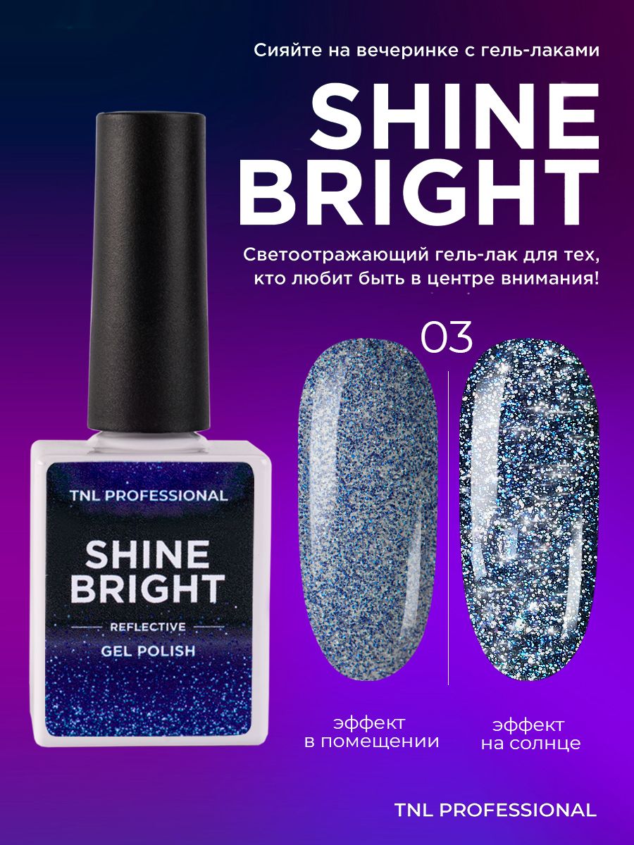 Светоотражающий гель лак для ногтей TNL Shine bright №03 - Звездный небосвод (серебристый голубой) , 10 мл