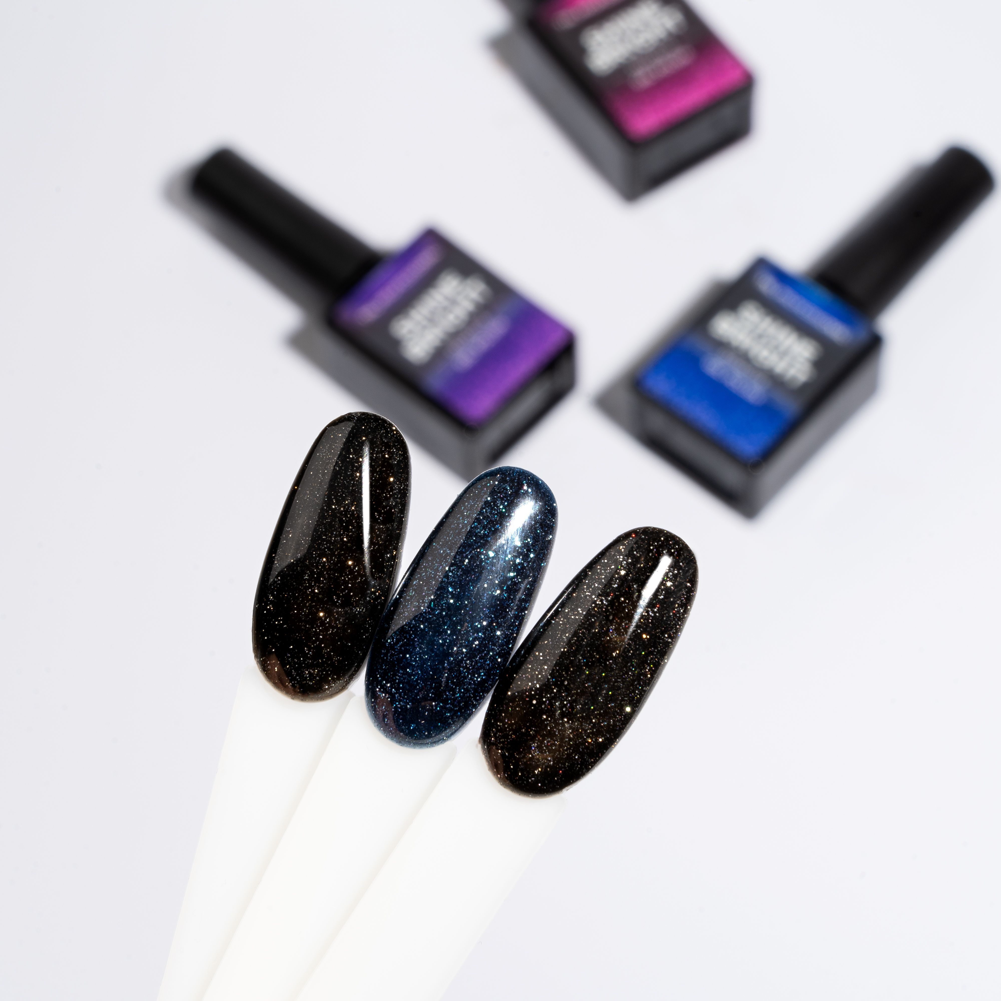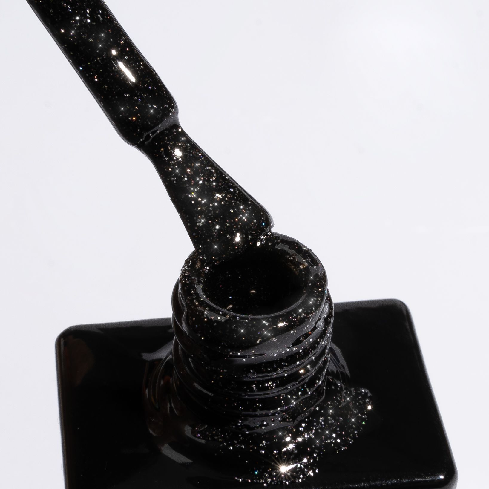 Характер мерцания меняется в зависимости от освещения: днем маникюр нежно блестит, а под ярким неоновым излучением ногти начинают сверкать, как диско-шар! Средняя консистенция, идеальная укрывистость и эффект самовыравнивания делают продукт невероятно удобным в работе.