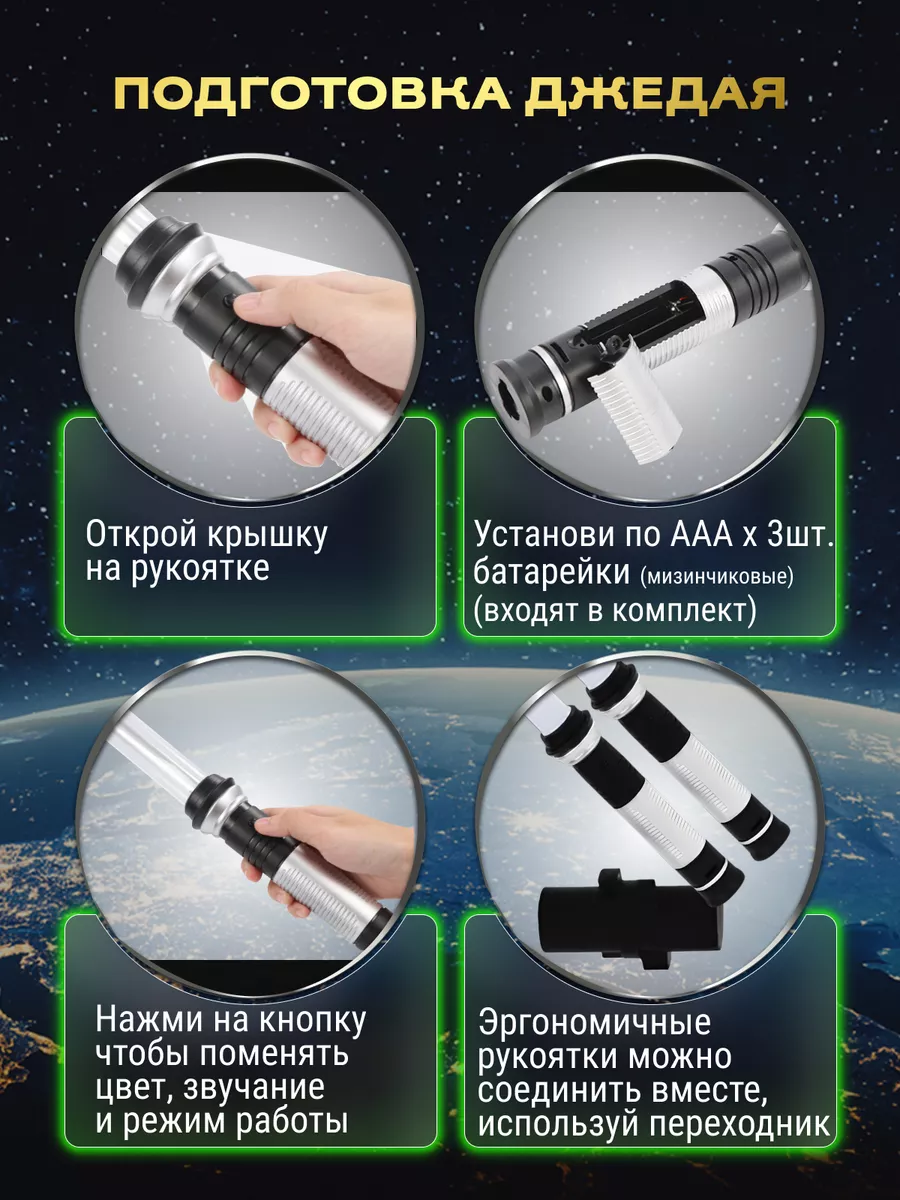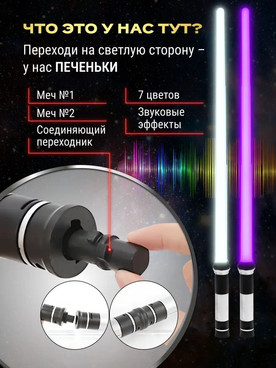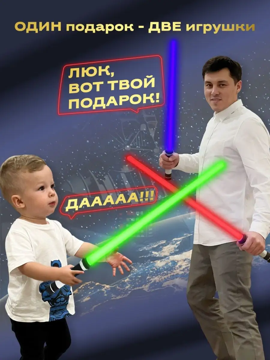 Артикул 153359248 Количество предметов в упаковке световой меч 2 шт; соединительный переходник; 6 батареек