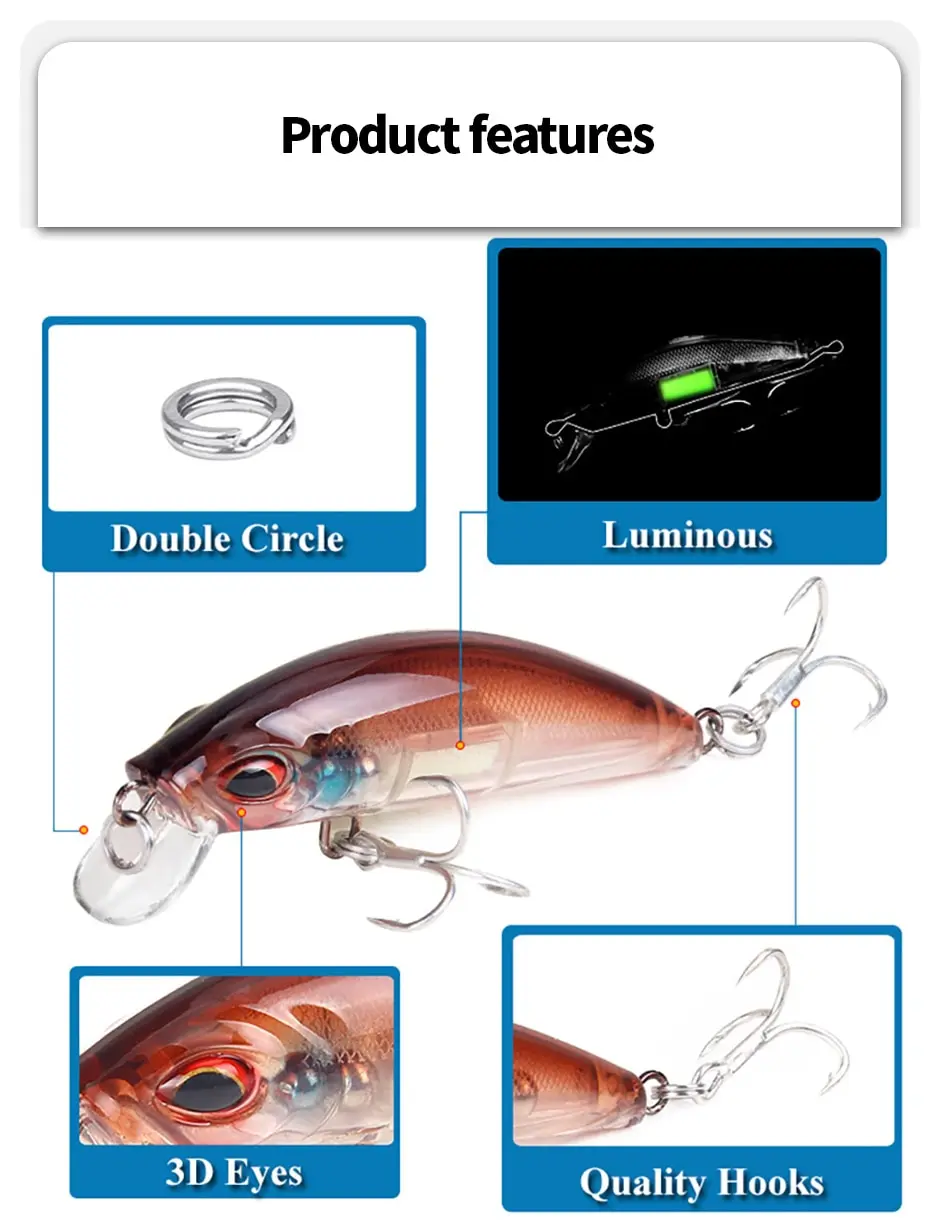 Светящаяся блесна рыболовные приманки 3D глаза ночью искусственная наживка для рыбалки жесткие Картеры воблеры с крючком Pesca