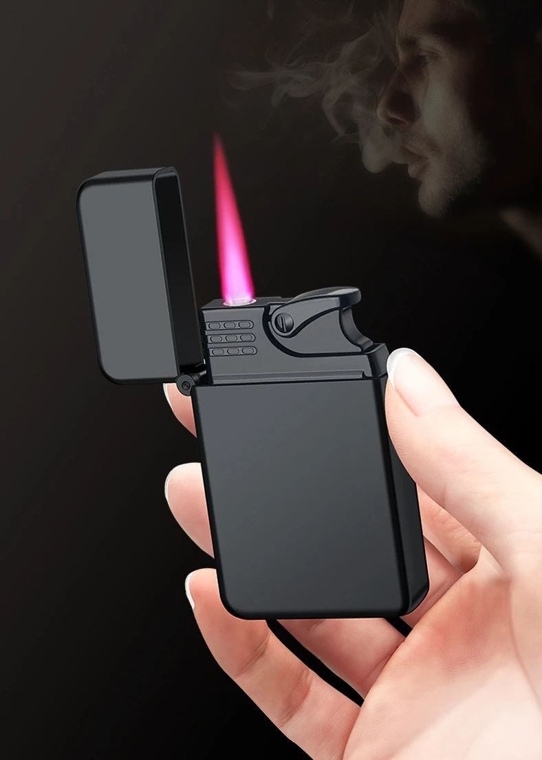 Светящаяся металлическая зажигалка для сигар, регулируемая Бутановая лампа с красным пламенем, уличная ветрозащитная, подарок для мужчин