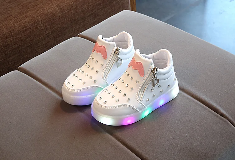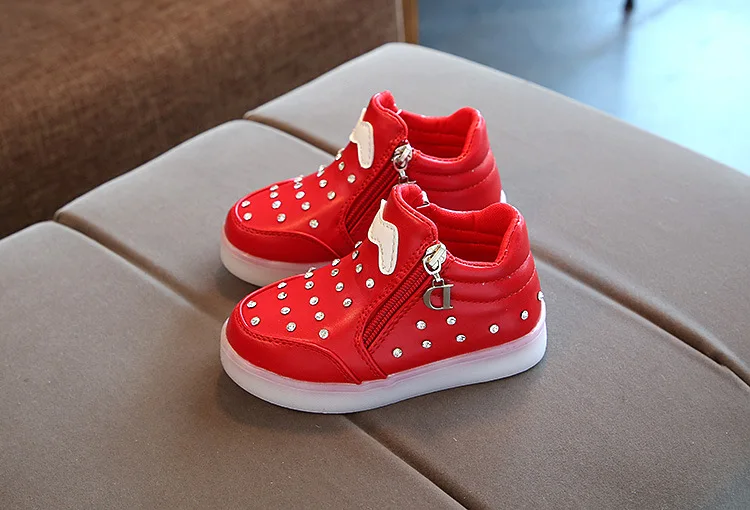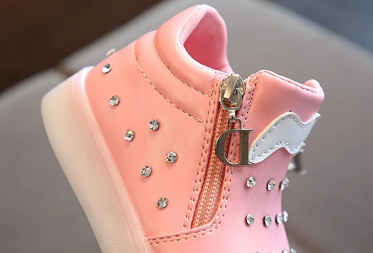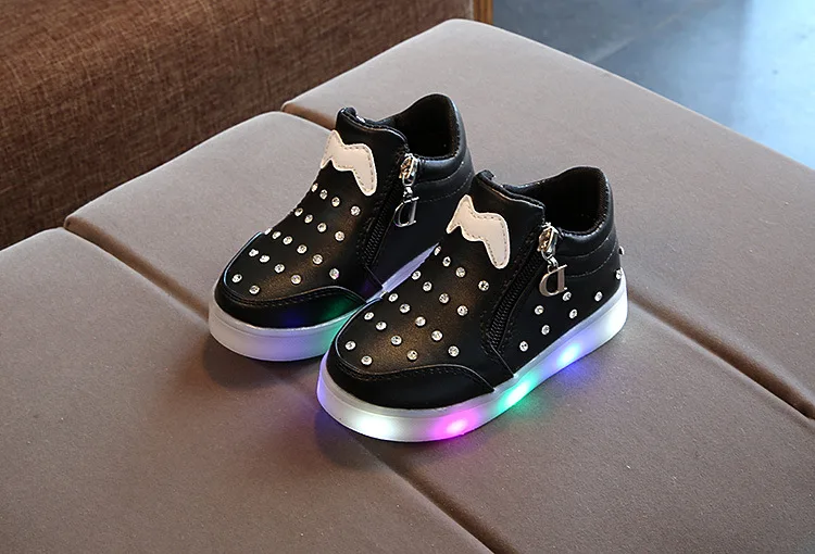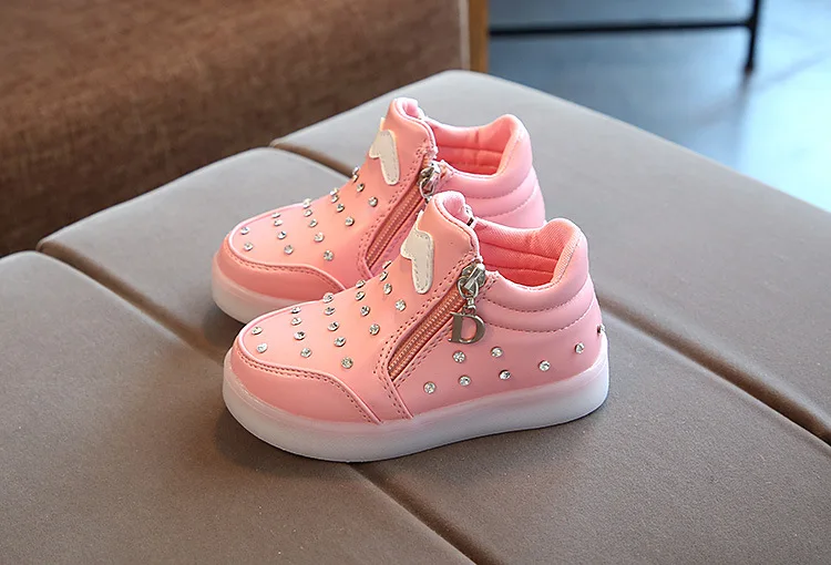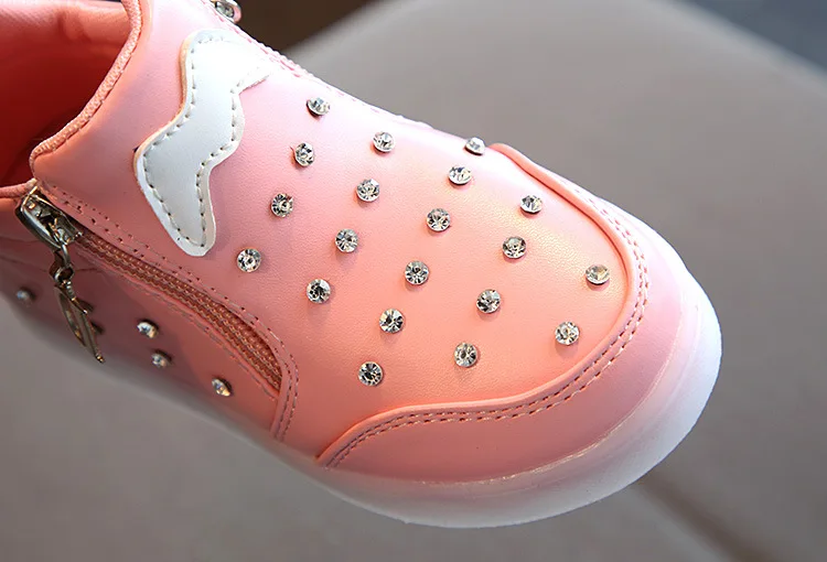Светящиеся светодиодные флюоресцентные туфли, детская модная повседневная обувь со стразами, нескользящая износостойкая светящаяся обувь с мягкой подошвой для девочек