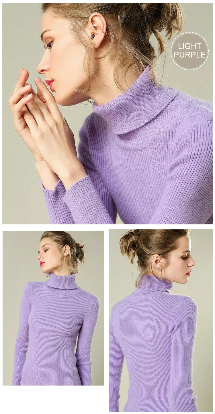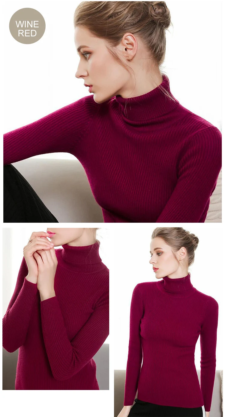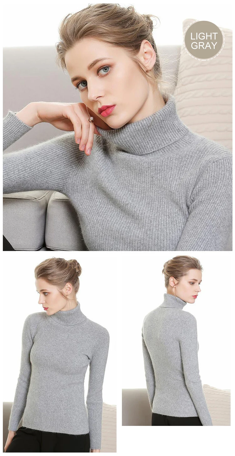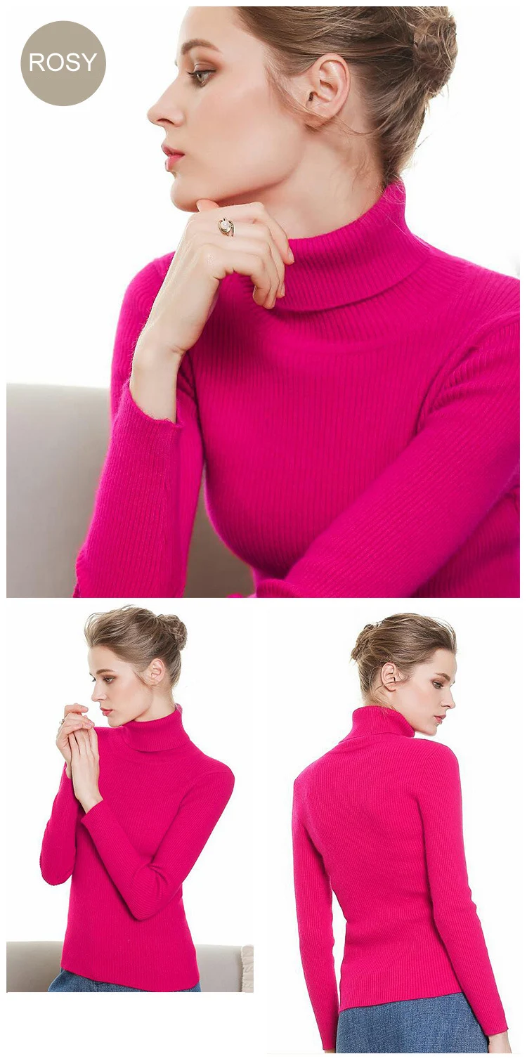 Свитер женский вязаный, желтый, с высоким воротом, для зимы, 2019