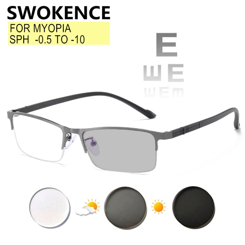 SWOKENCE очки для близорукости от-0.5 до-10 женские мужские Фотохромные защита от синего света полурама очки с диоптриями минус для астигматизма F040
