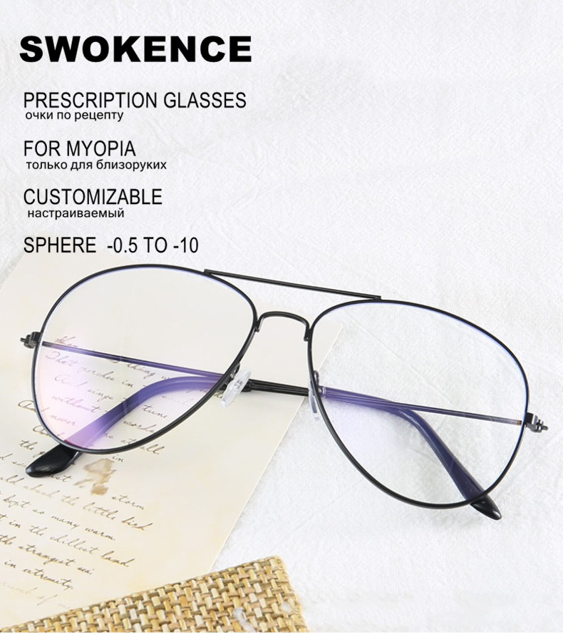 SWOKENCE Рецептурные очки для близоруких-0,5 до-10 Для женщин мужчин п сплав Frame близорукие очки астигматизма по индивидуальному заказу F067