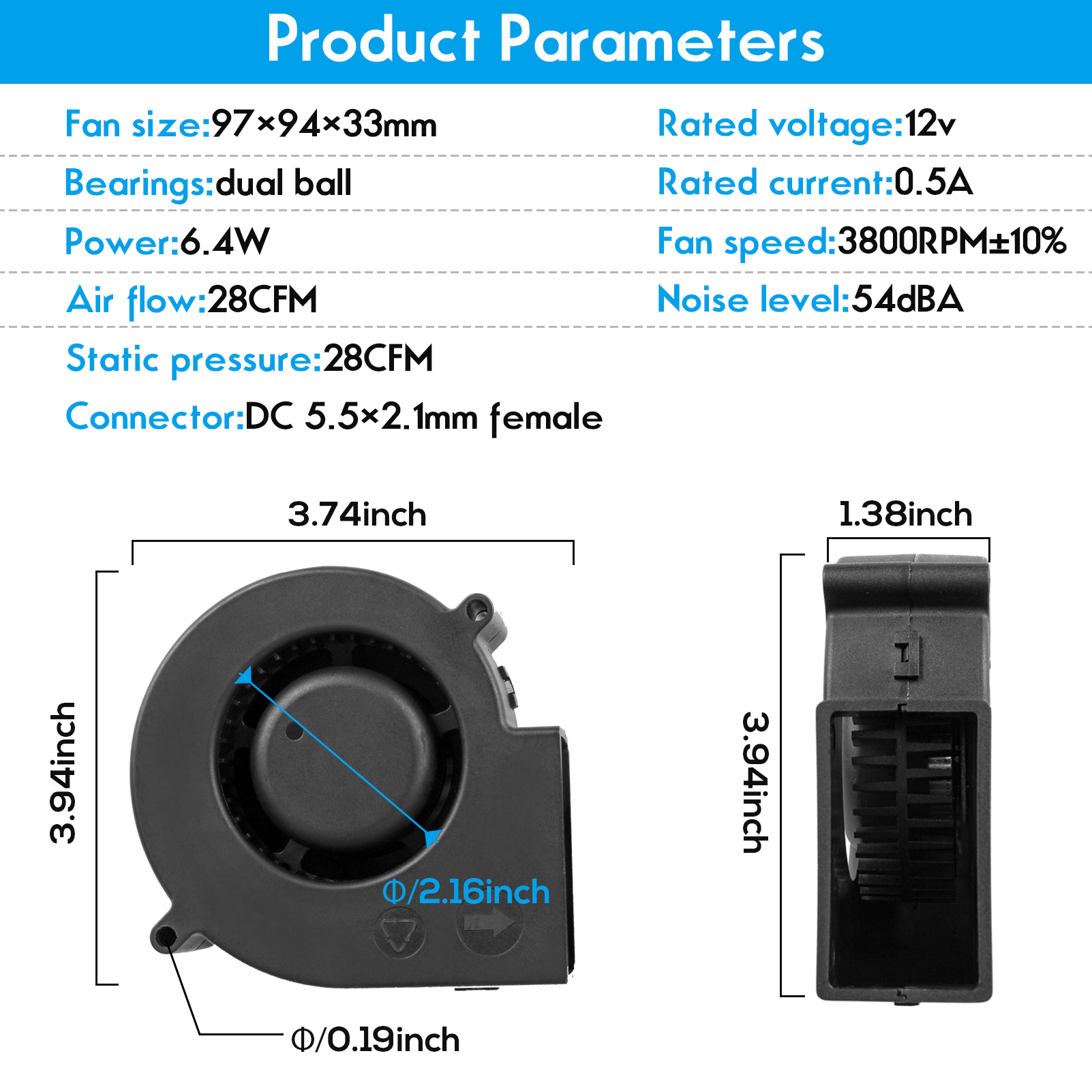 Plastic diameter Air Ducting for 97x97x33mm BBQ Blower Cooking Fan Smokehouse Fan.