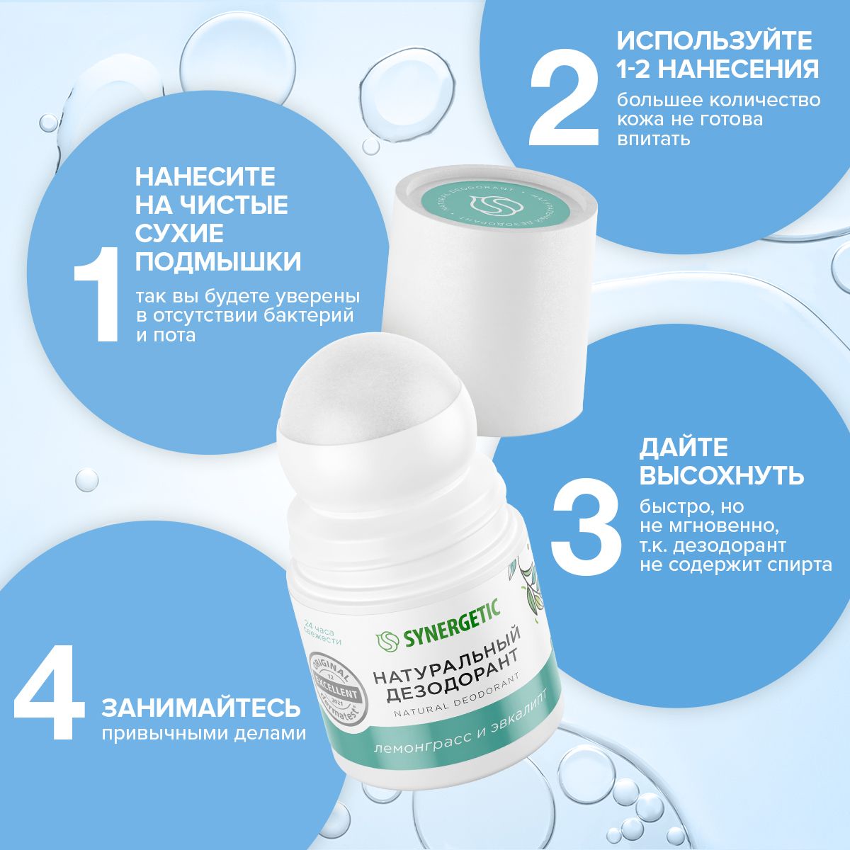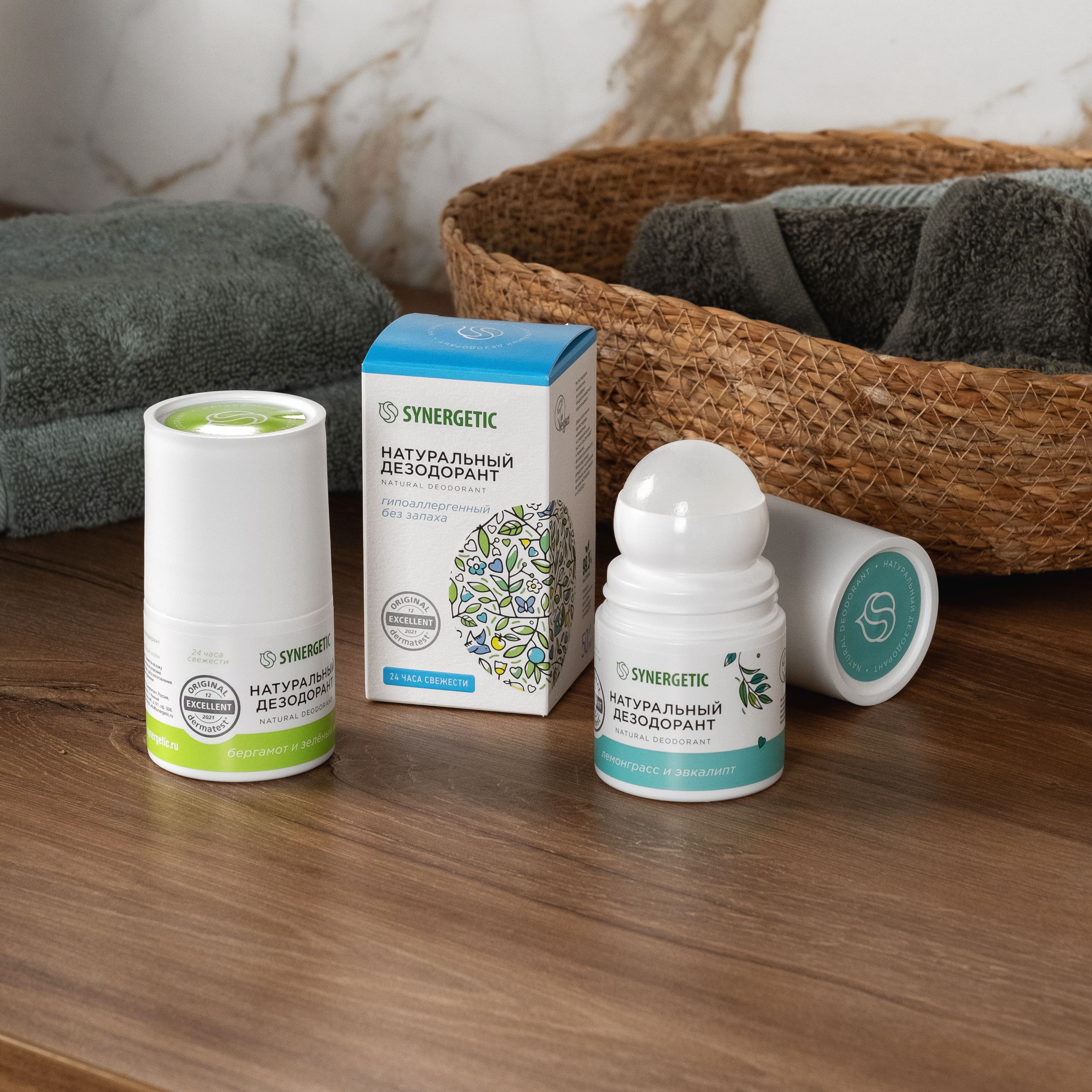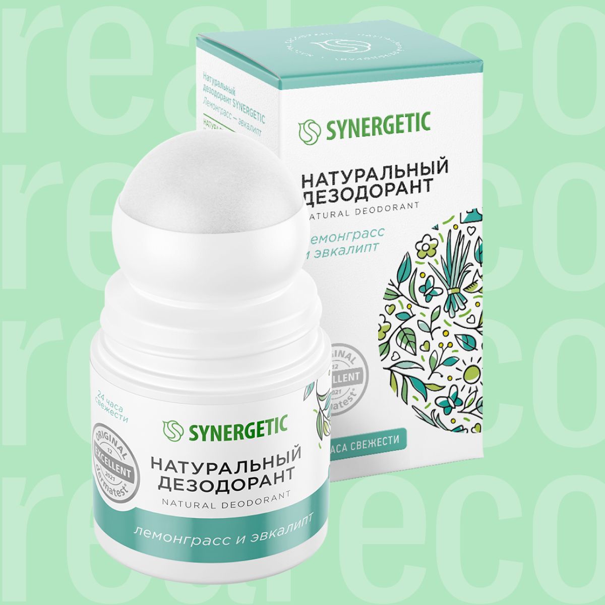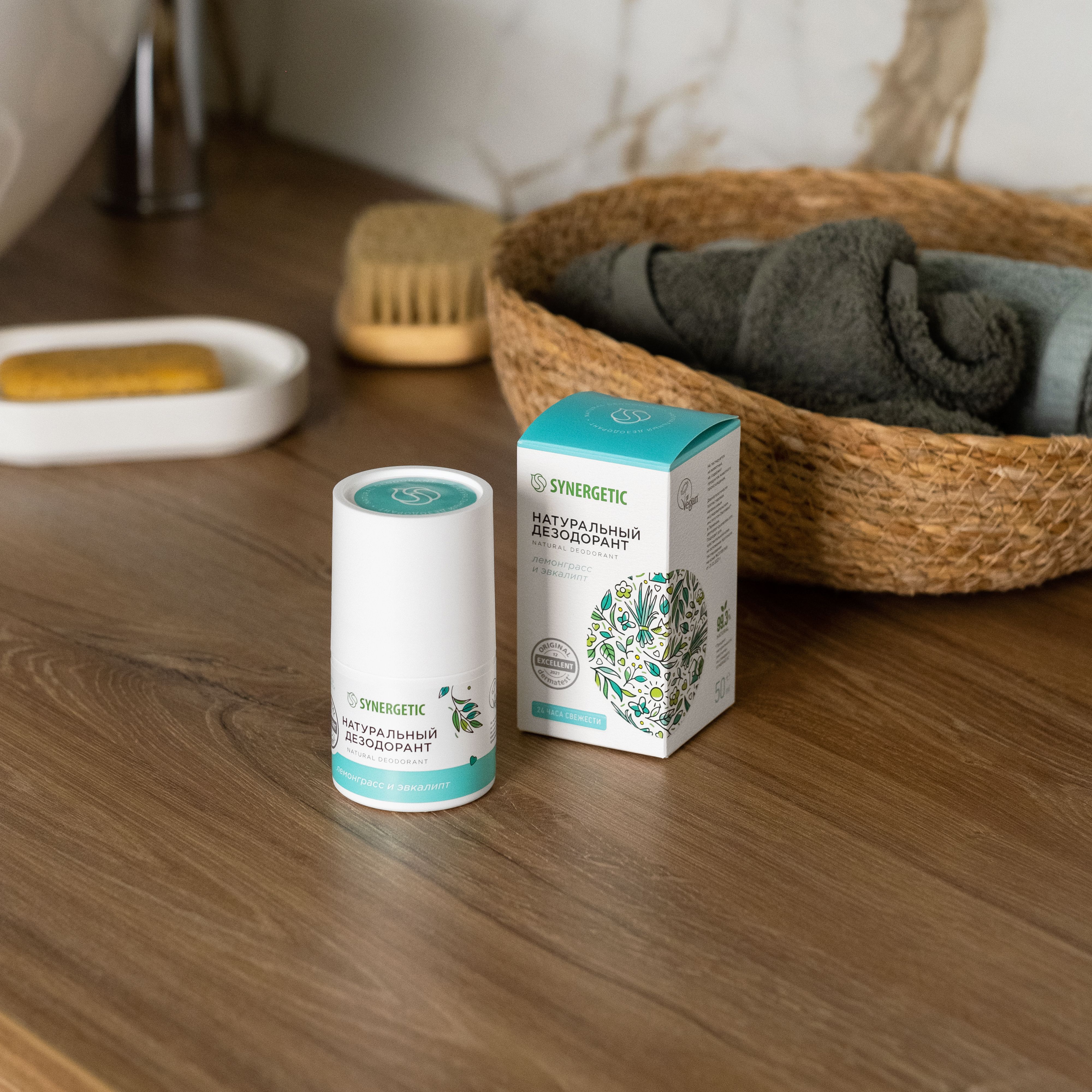 SYNERGETIC Натуральный шариковый дезодорант лемонграсс-эвкалипт, 50 мл