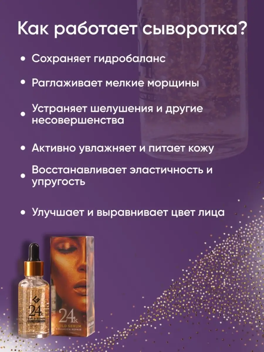 Действие Антивозрастная сыворотка; коллаген; УВЛАЖНЕНИЕ РОВНЫЙ ТОН СИЯНИЕ