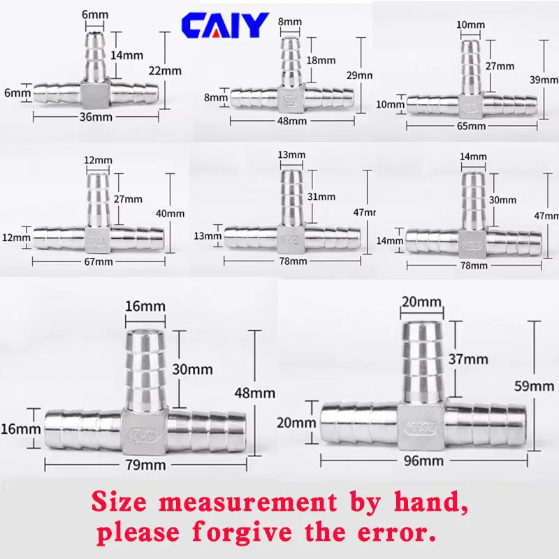 Т-образный штуцер для шланга, 6 мм, 8 мм, 10 мм, 12 мм, 16 мм, из нержавеющей стали 304
