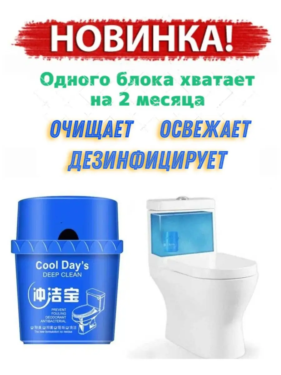 Описание: По отзывам наших покупателей, блока в среднем хватает на 2 МЕСЯЦА и даже больше для семьи из 4-х человек!!! МЫ ОЧЕНЬ РАДЫ. Туалетный блок для бачка Cleaneld - инновационный продукт для чистоты Вашей ванной комнаты. Специально разработанная формула не только окрашивает воду, но и обеспечивает очевидную чистоту и свежесть при каждом смывании! Моющее средство для ванной комнаты поможет поддерживать чистоту в уборной. Средство для чистки унитаза поможет хозяйке поддерживать чистоту в доме. Туалетный блок обеспечивает гигиеническую чистоту, защищает от известкового налёта, обильно пенится, прост и удобен в использовании, эффективное решение для чистоты и свежести Вашего туалета. Чистящее средство навсегда станет вашим помощником! Таблетки для унитаза - неотъемлемая часть ухода за ванной комнатой.