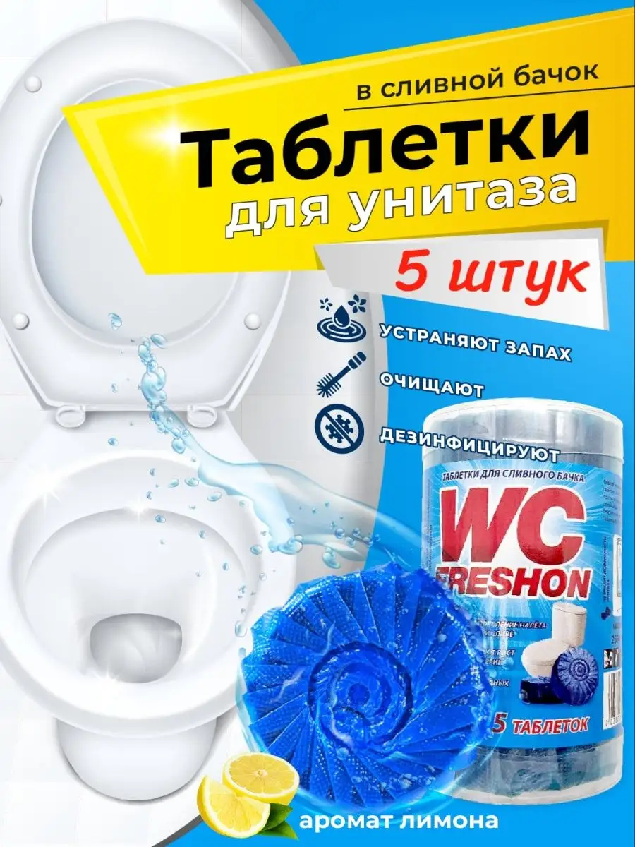 Таблетки для чистки и аромата унитаза в сливной бачок 5 шт