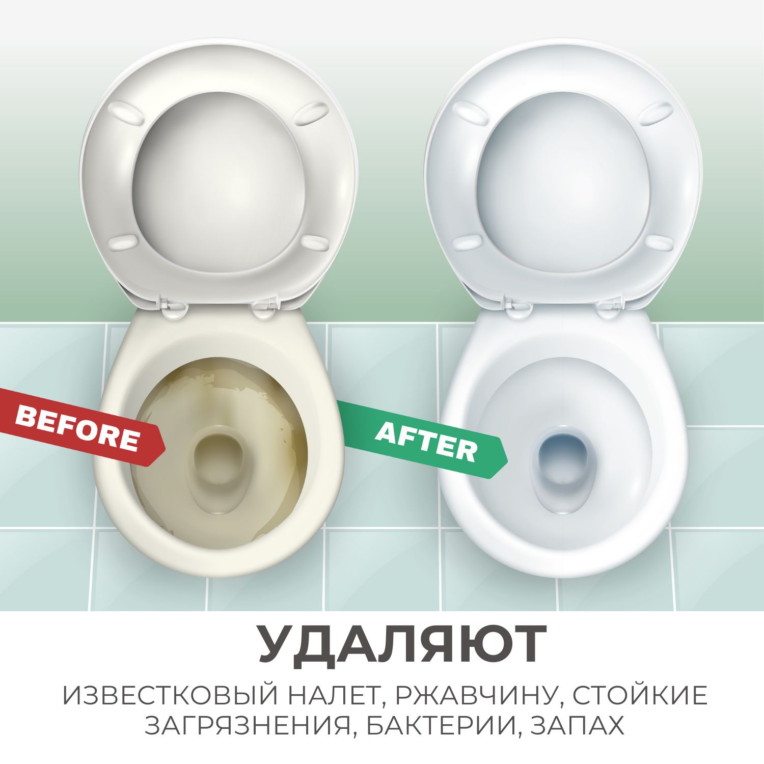 Эффект от использования: дезинфекция, удаление запаха, удаление известкового налета.