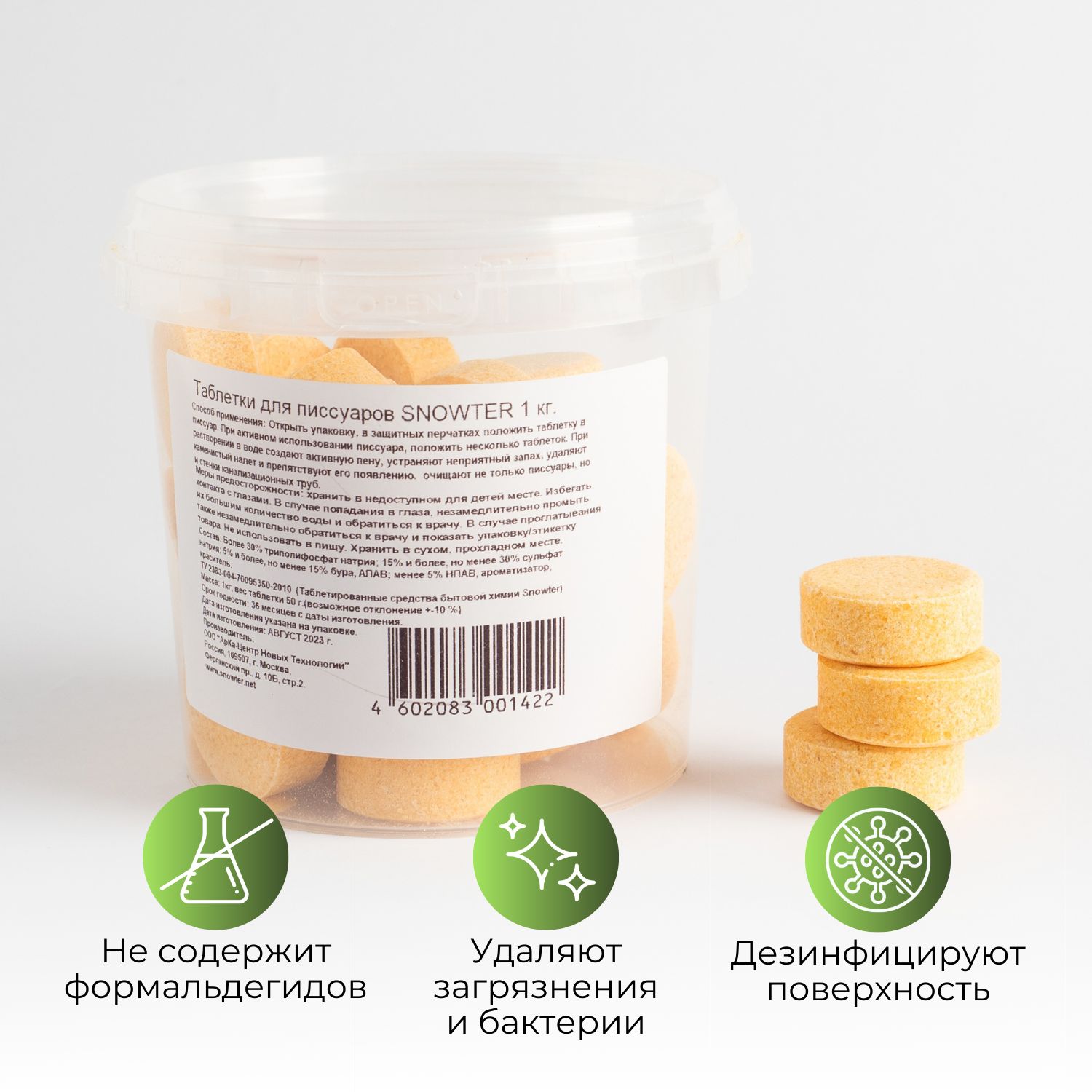 Таблетки для писсуаров SNOWTER 1 кг, пластик. ведерко, с ароматом лимона