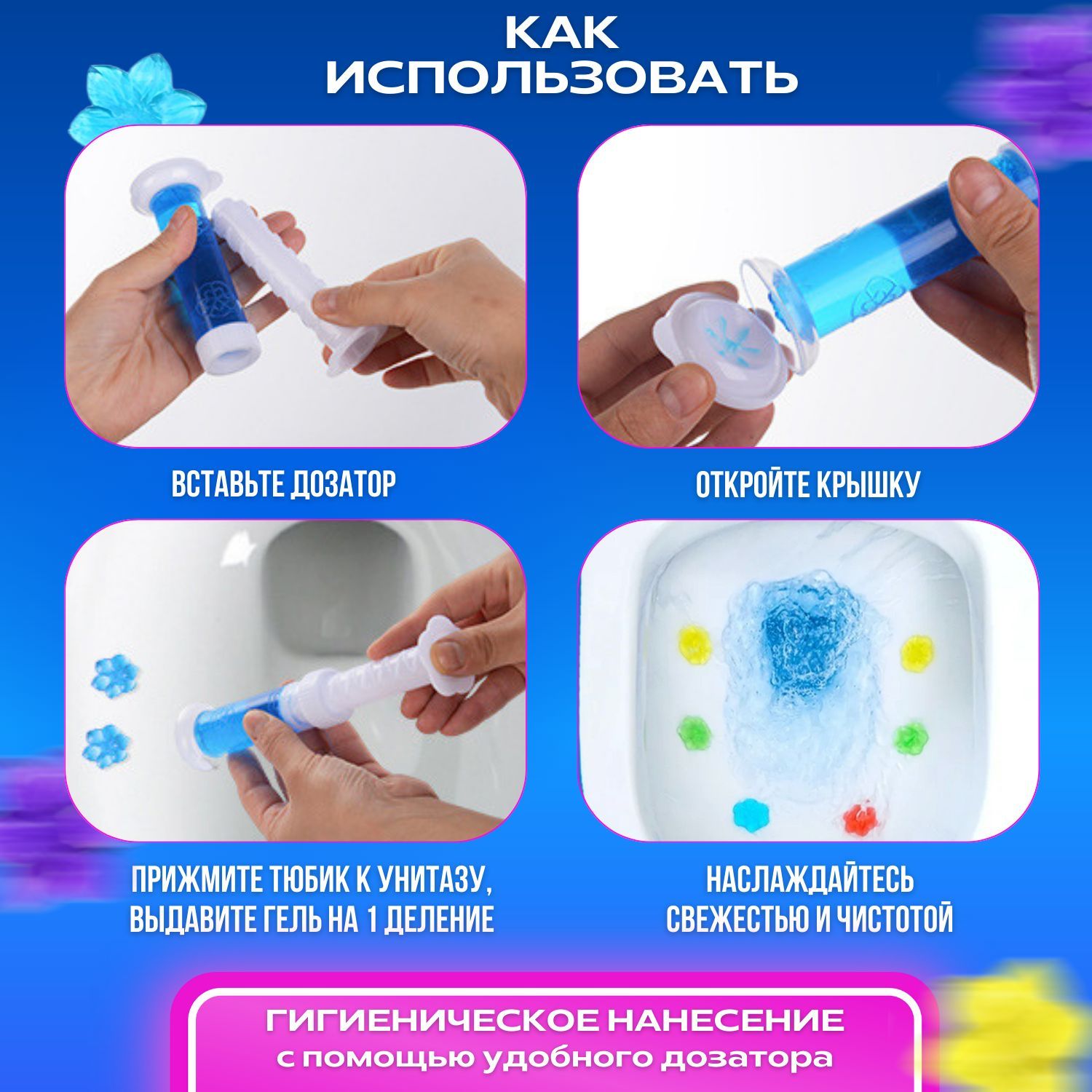 Описание: Гель-дозатор для унитазаГель-дозатор для унитазаЭто универсальное средство, которое поможет избавиться от налета, известкового осадка и ржавчины в унитазе, а также обеспечит дезинфекцию и гигиеническую чистоту. Набор включает в себя чистящий гель с дозатором, который быстро и эффективно очищает поверхность унитаза. Использование дозатора гигиеничнее туалетных блоков, так как не нужно соприкасаться с грязными поверхностями. Просто нанесите одну таблетку (диск - цветок) внутри унитаза. Дозатор ровно распределит гель на 11 дисков. 1 упаковки с одним тюбиком геля хватит на срок до 63 дней. Таблетки для унитаза гель-дозатор содержат специальный очистительный гель, который мгновенно удаляет грязь и налет, а также ароматизатор, который обеспечивает свежесть и приятный запах в вашей ванной комнате. Это удобное и экономичное решение для домашних нужд, которое позволяет избежать использования химических и бытовых средств при чистке туалета. Не откладывайте чистку вашего туалета на потом! Попробуйте Таблетки для унитаза гель-дозатор и наслаждайтесь чистотой и свежестью в вашем доме!
