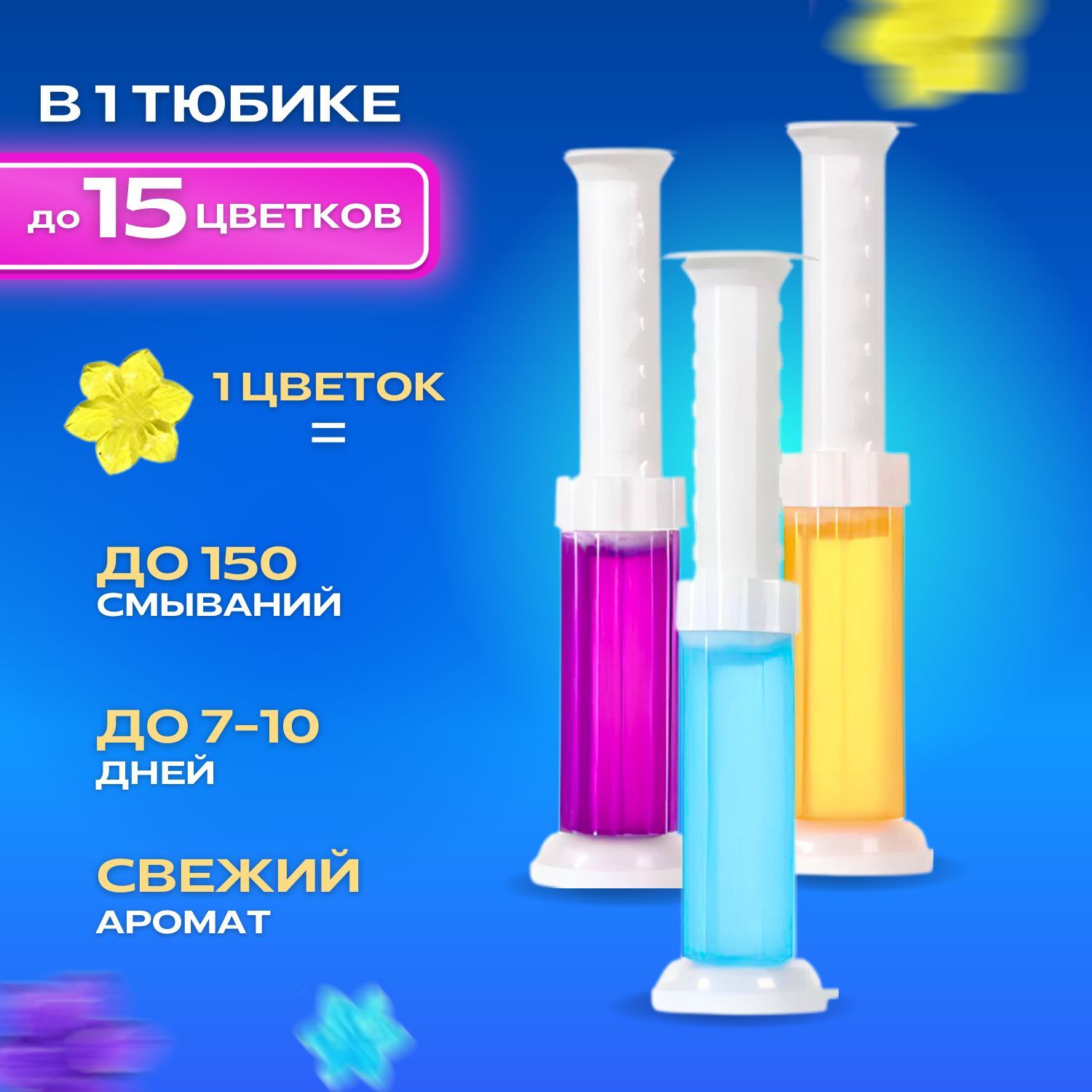 Описание: Гель-дозатор для унитазаГель-дозатор для унитазаЭто универсальное средство, которое поможет избавиться от налета, известкового осадка и ржавчины в унитазе, а также обеспечит дезинфекцию и гигиеническую чистоту. Набор включает в себя чистящий гель с дозатором, который быстро и эффективно очищает поверхность унитаза. Использование дозатора гигиеничнее туалетных блоков, так как не нужно соприкасаться с грязными поверхностями. Просто нанесите одну таблетку (диск - цветок) внутри унитаза. Дозатор ровно распределит гель на 11 дисков. 1 упаковки с одним тюбиком геля хватит на срок до 63 дней. Таблетки для унитаза гель-дозатор содержат специальный очистительный гель, который мгновенно удаляет грязь и налет, а также ароматизатор, который обеспечивает свежесть и приятный запах в вашей ванной комнате. Это удобное и экономичное решение для домашних нужд, которое позволяет избежать использования химических и бытовых средств при чистке туалета. Не откладывайте чистку вашего туалета на потом! Попробуйте Таблетки для унитаза гель-дозатор и наслаждайтесь чистотой и свежестью в вашем доме!