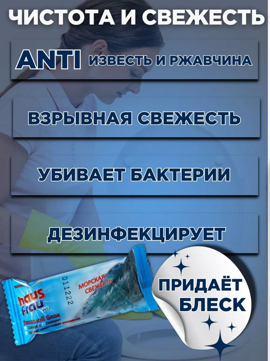 Описание: Таблетки для сливного бачка унитаза или как туалетный сменный подвесной блок– это эффективное очищающее средство вашего унитаза, которое превратит его в идеально чистый и гигиеничный туалет, а так же освежит его. Наш туалетный блок, представленный в виде таблетки, является надежным блоком для чистки, который обеспечит неповторимый блеск и свежесть, избавит от налета. Доступное в нашем ассортименте средство для унитаза для сливного бачка – то, что вам нужно для поддержания чистоты и комфорта в вашем доме. Таблетка для унитаза – легко справится с задачей чистки вашего туалета. Она эффективно удаляет загрязнения и неприятные запахи, обеспечивая приятный аромат ( лимона, морская свежесть, хвойный ) и гарантированный результат, заменит освежитель, создает пену. Таблетка для бачка действует в течение длительного времени (до 5 дней), обеспечивая надежную защиту от бактерий и грязи, придавая окрашивание воды и аромат для туалета как освежитель. Российский производитель заботится о вашем комфорте и делает все возможное, чтобы предложить качественный бытовой товар по доступной цене. Таблетки для унитаза сочетают в себе надежность и функциональность. С помощью них вы сможете чистить туалет максимально эффективно и с минимальными усилиями. Благодаря особым свойствам таблетки, ваш унитаз станет не только сверкающе чистым, но и защищенным от грязи и микроорганизмов. Удобная форма и прочистка внутри унитаза действует даже на самые труднодоступные участки, доставляя максимальный результат. Средство для унитаза чистящее можно выбрать в различных цветах и ароматах. От яркого синего до нежного желтого – вы можете подобрать тот цвет, который сочетается с дизайном вашей ванной комнаты. Гипоаллергенные компоненты в составе таблеток обеспечивают безопасность использования и нежное очищение, не ставя под угрозу ваше здоровье. Не упустите свой шанс и сделайте свой туалет ванной комнаты блестящим с нашими таблетками для унитаза.