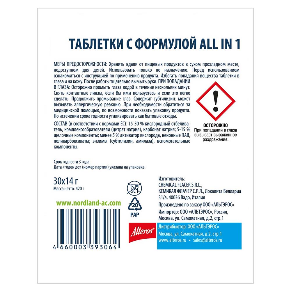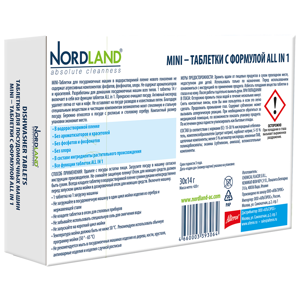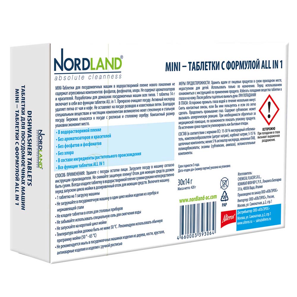 Таблетки NORDLAND для посудомоечных машин, 30 шт.* 14 г.