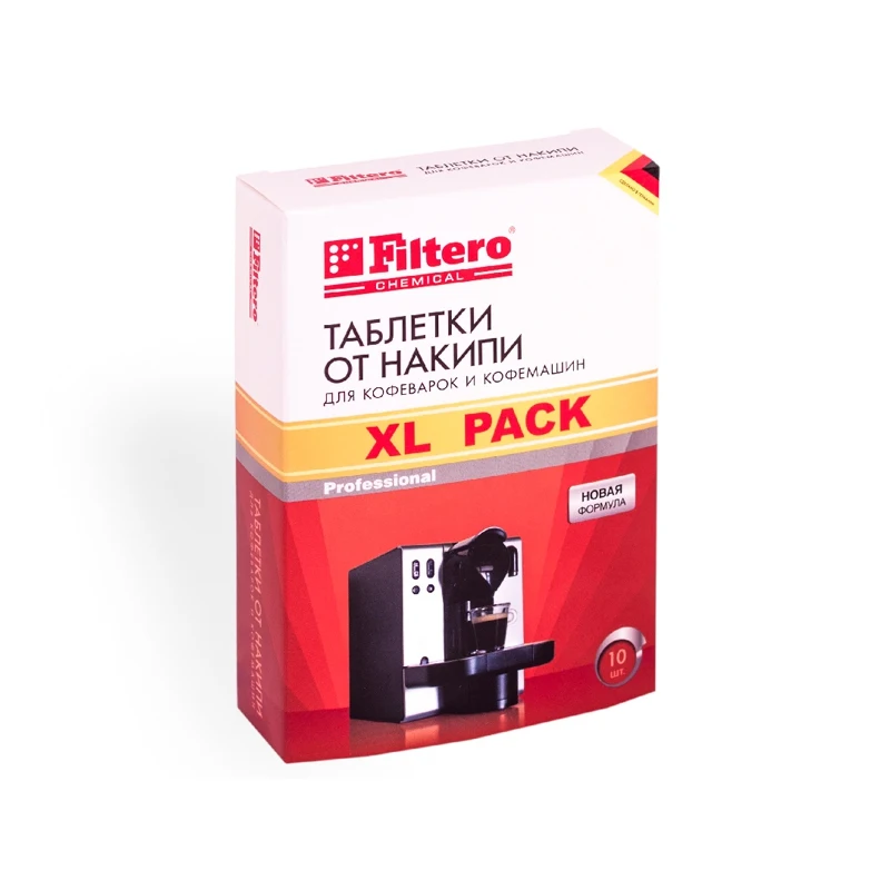 Таблетки от накипи для кофеварок и кофемашин Filtero XL Pack 608.  Разработаны специально для кофемашин. Обеспечивают быстрое и тщательное удаление известкового налета с труднодоступных частей кофемашины. Таблетки Filtero подходят для всех автоматических кофемашин.