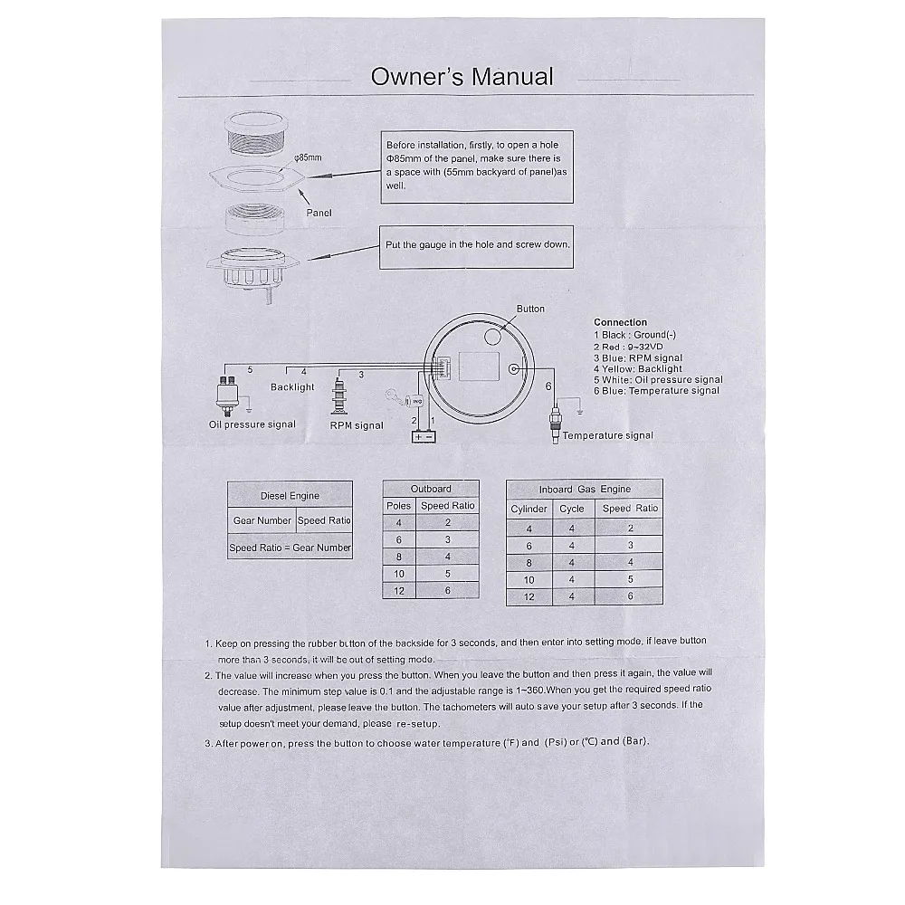 Регулируемый коэффициент скорости тахометра: 1,0-360,0