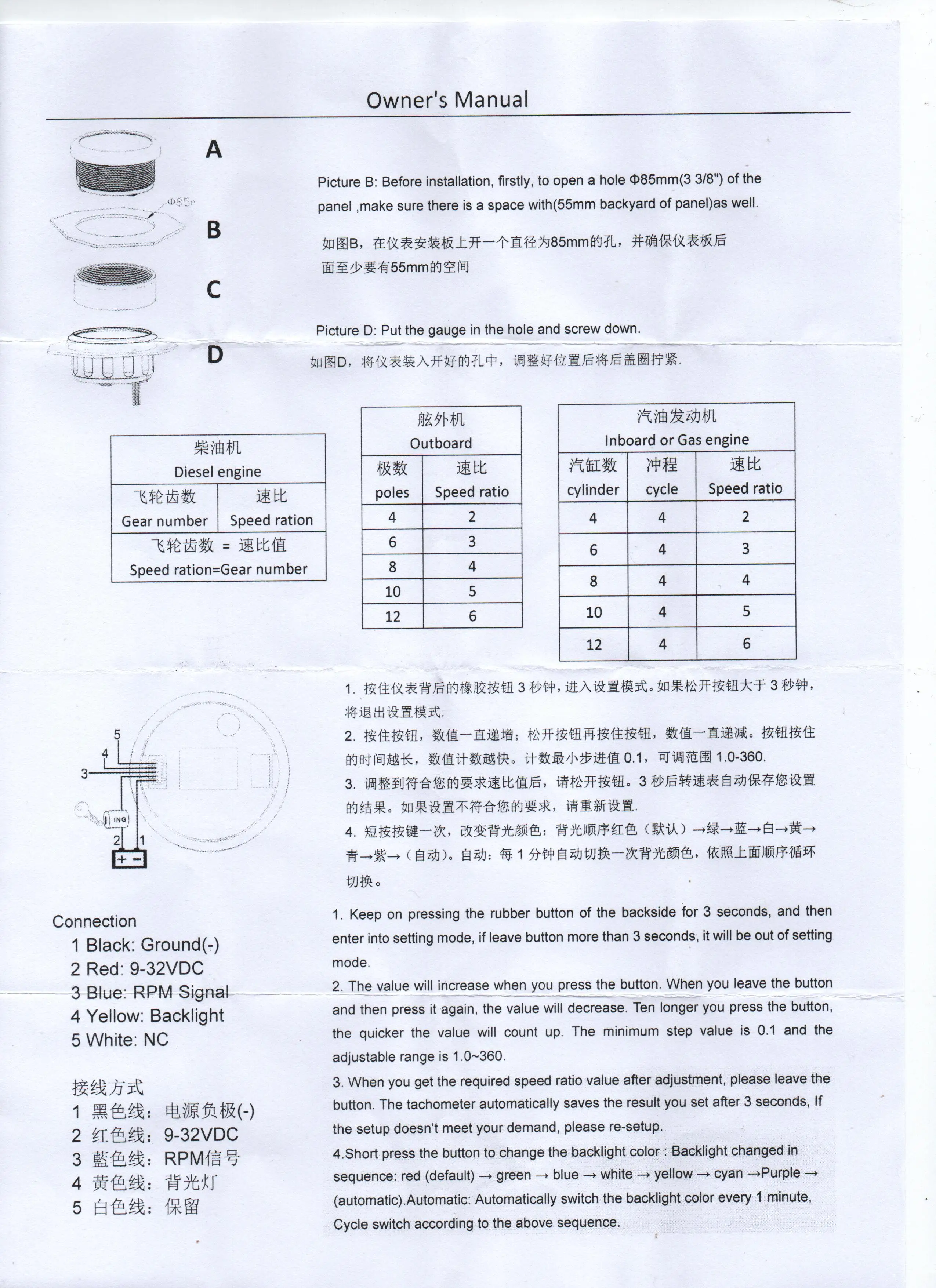 -Тахометр подходит для автомобиля/грузовика/лодки/дизельного генератора/бензинового двигателя