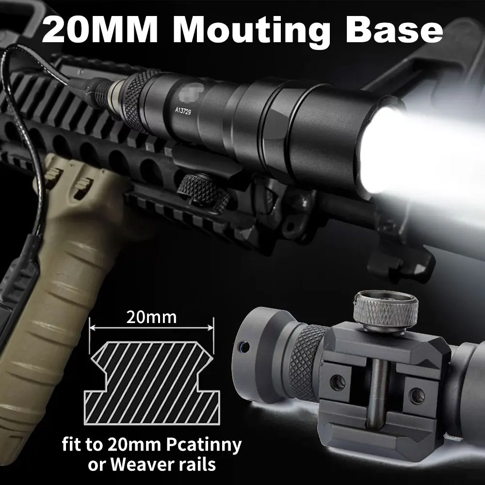 Тактический фонарик, Φ 400 люмен, фонарь для охоты, фотографический фонарь с рельсовым креплением Пикатинни 20 мм и переключателем давления