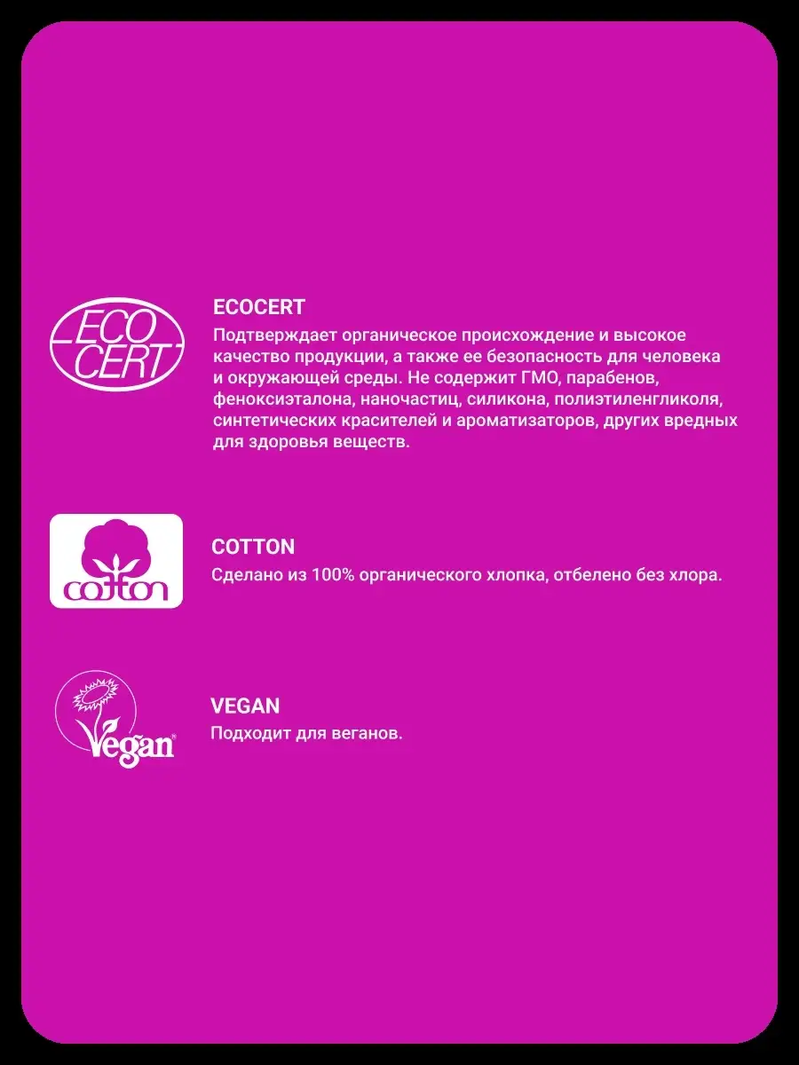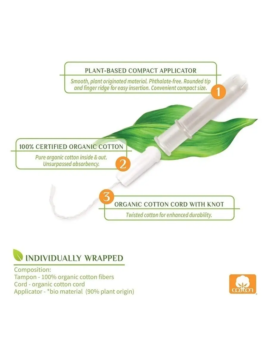 Комплектация Органические тампоны 16 шт в упаковке - 1 шт