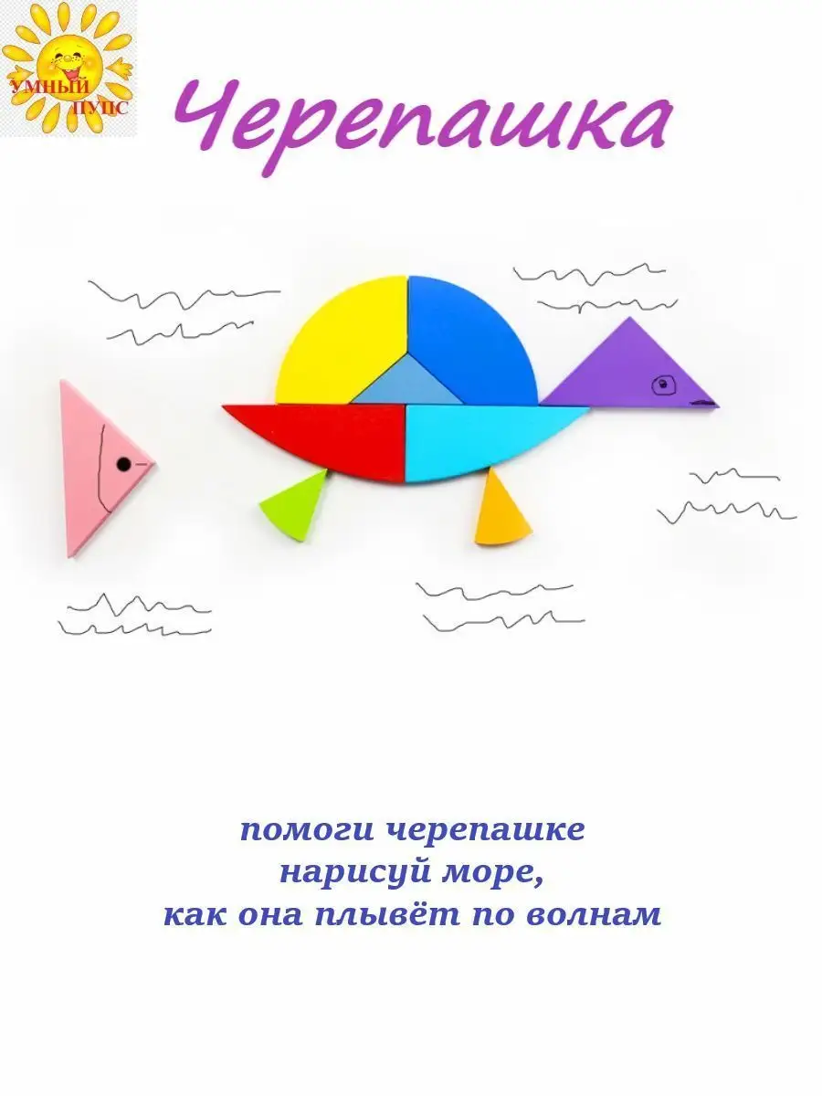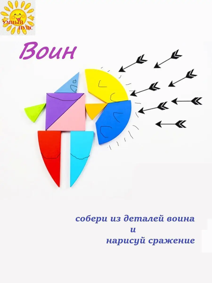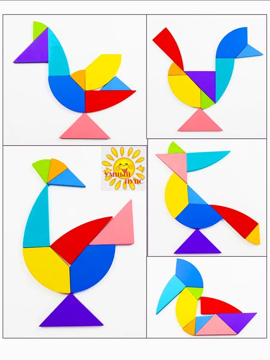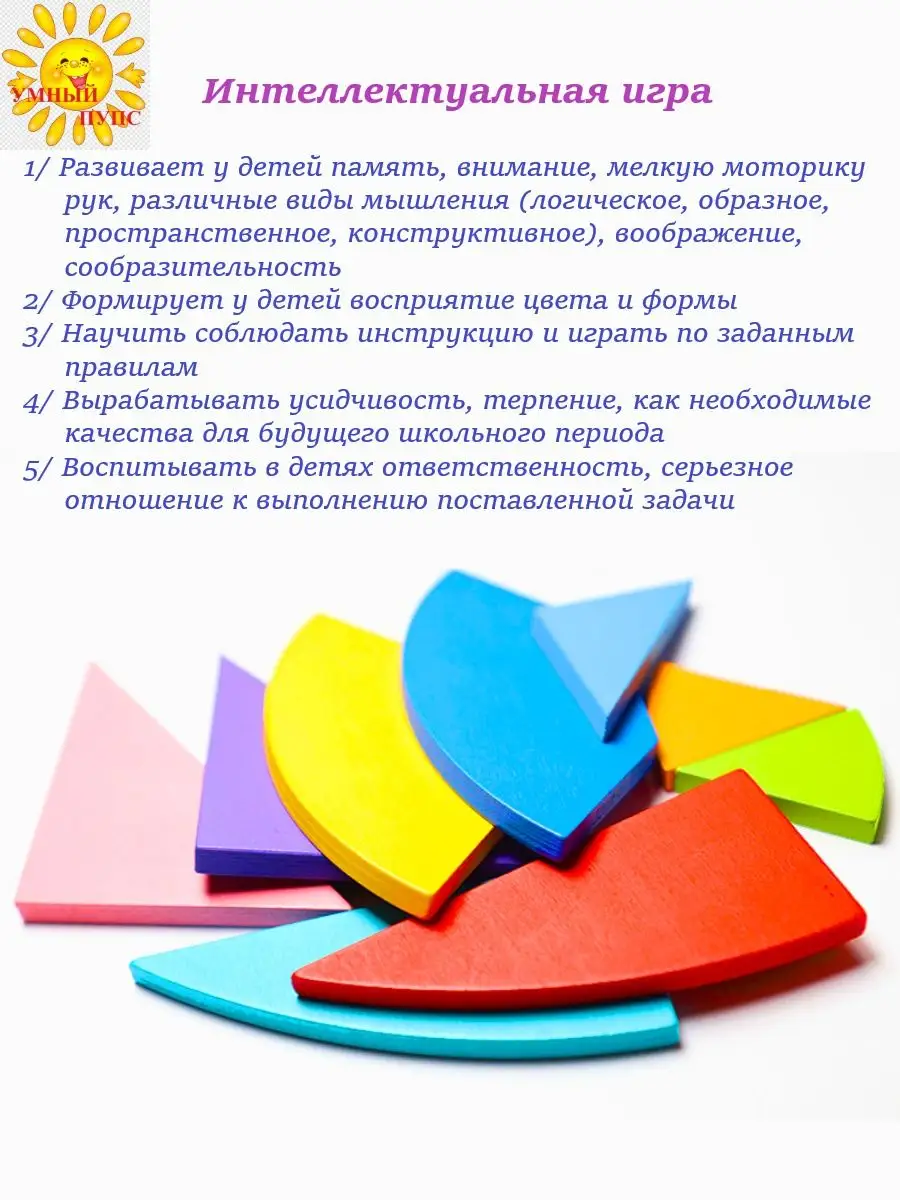 Танграм деревянный головоломка с карточками в коробочке