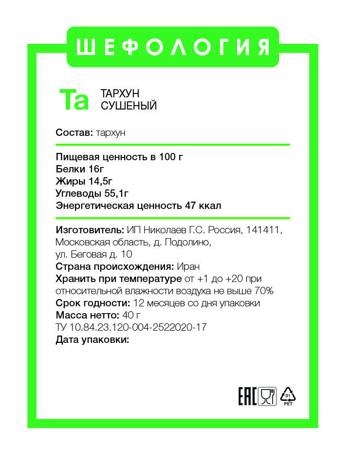 Специи и пряности Эстрагон/тархун