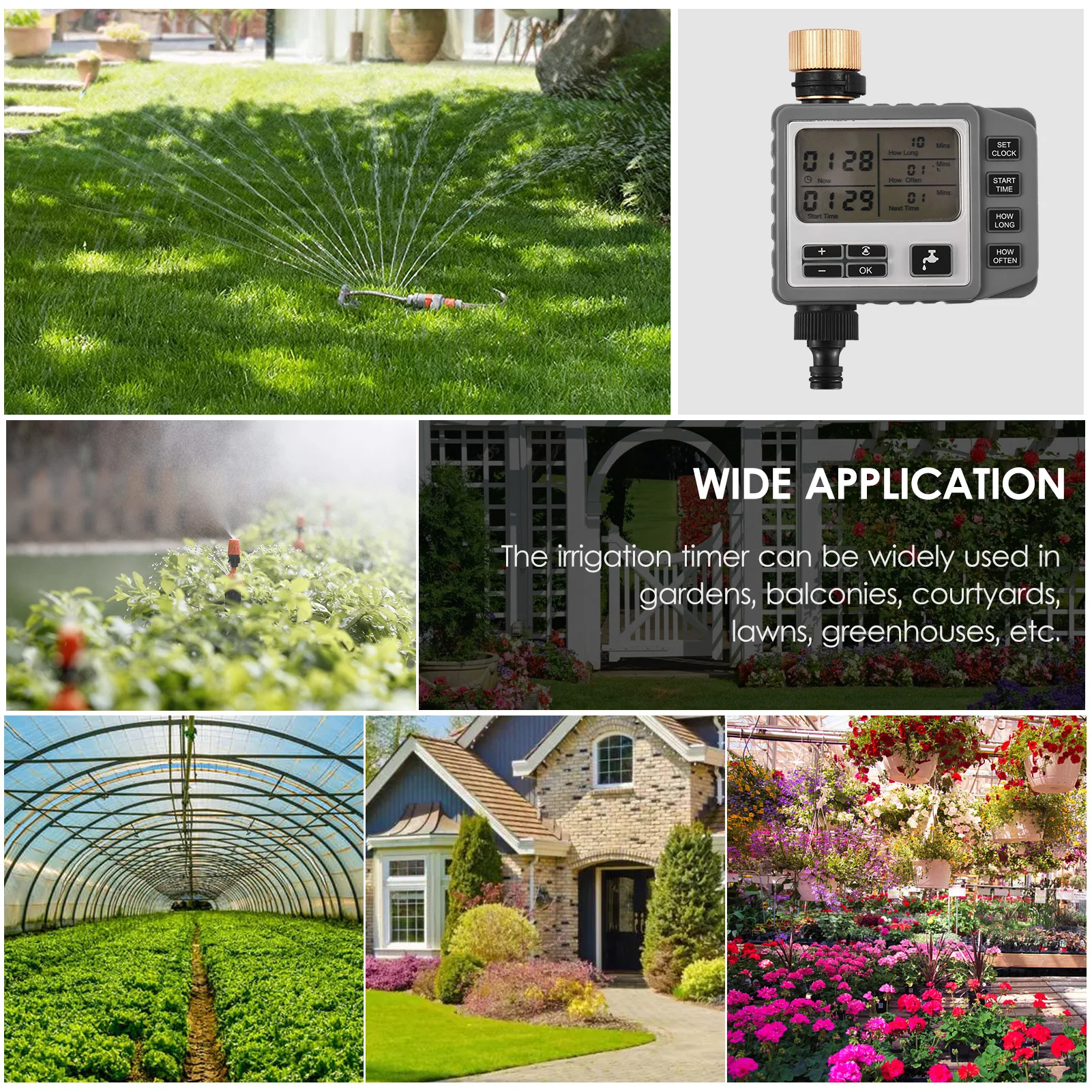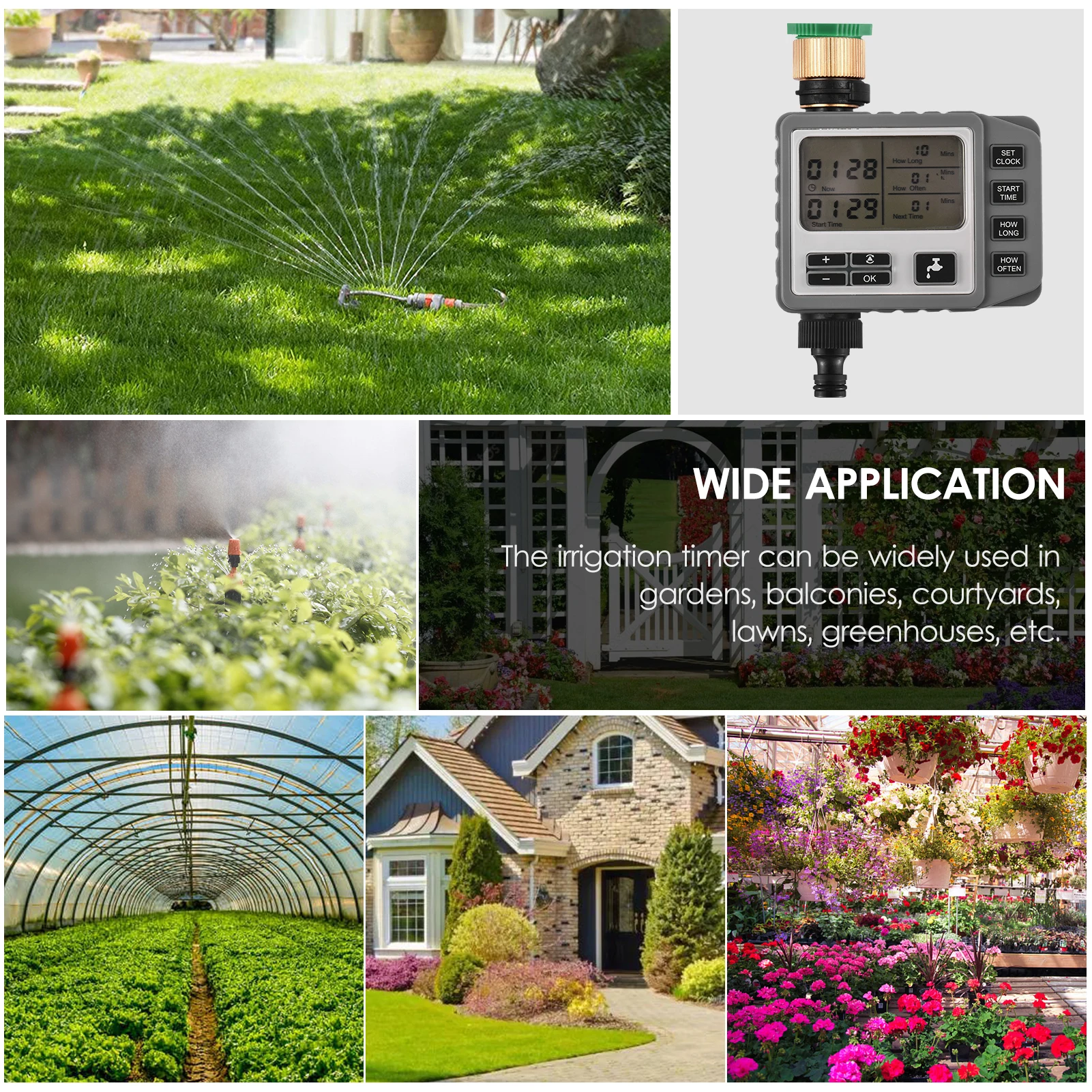 Таймер полива может сэкономить воду и время, что является экологически чистым и эффективным. Его можно широко использовать в садах, балконах, дворах, лужайках, теплицах и т. Д.