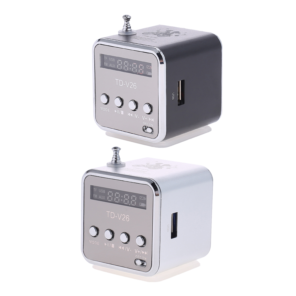 TD-V26 Mini 1,0 дюймов радио FM цифровые портативные колонки w/FM радио приемник Поддержка TF карты U диск для MP3 музыкальный плеер