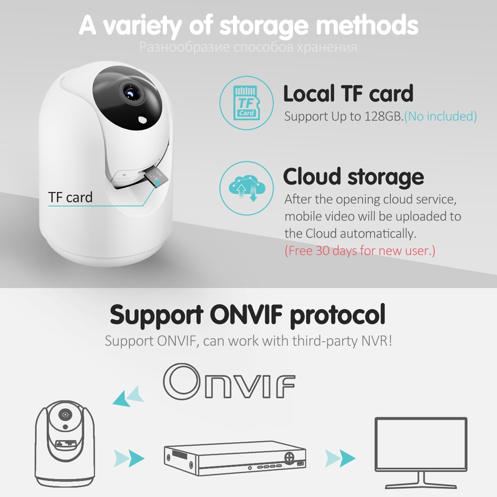 Поддержка локального хранилища карт TF (до 128 ГБ) и облачного хранилища (за использование необходимо заплатить плату).