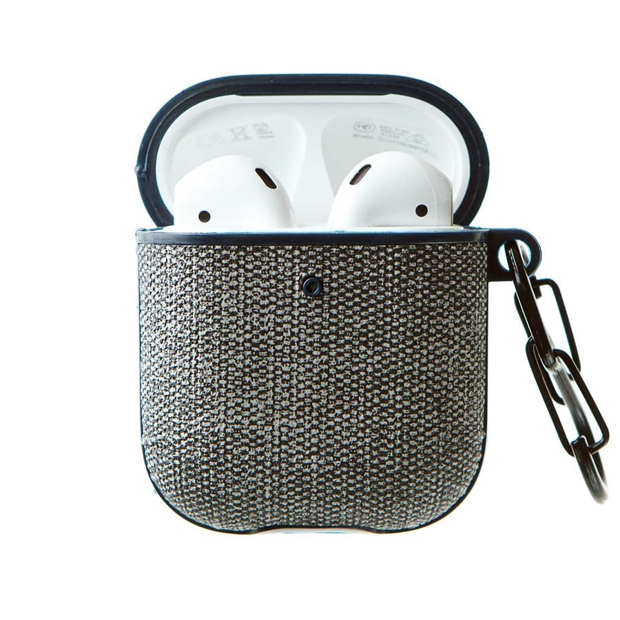 Текстильный защитный чехол для наушников AirPods 1, 2 с карабином, серый