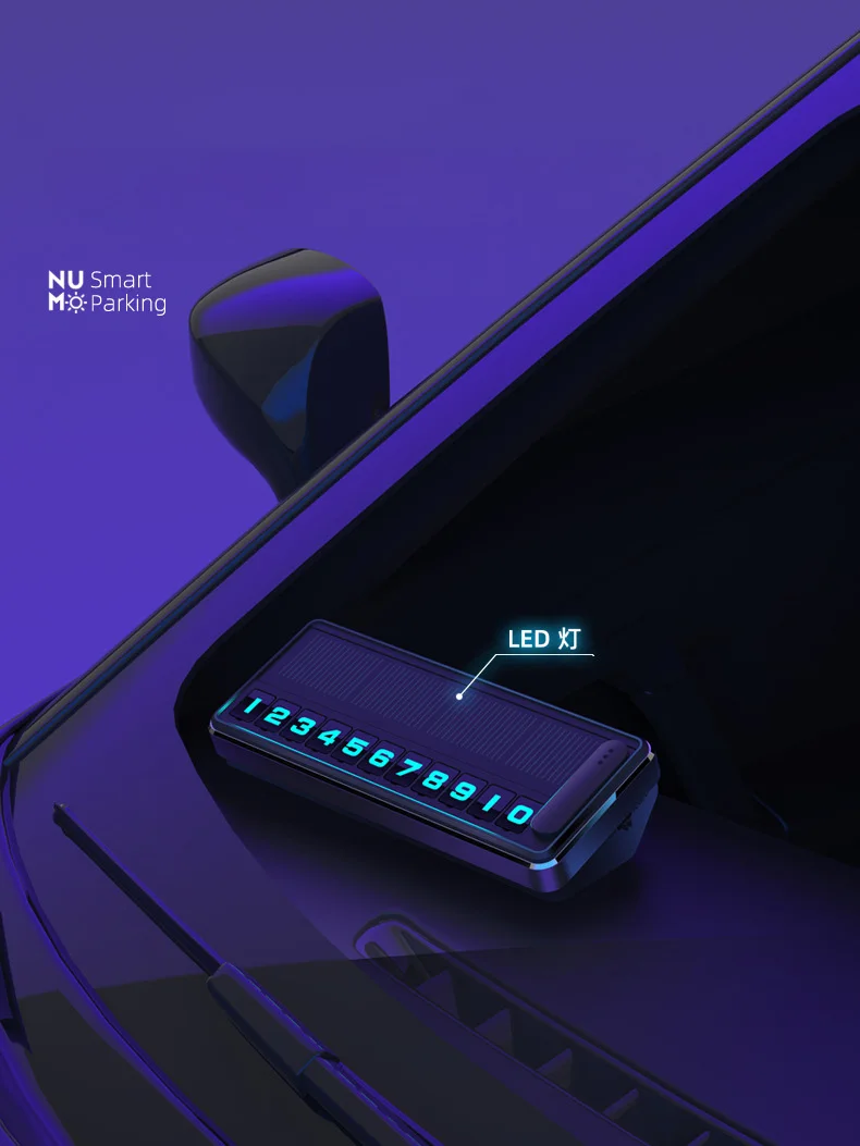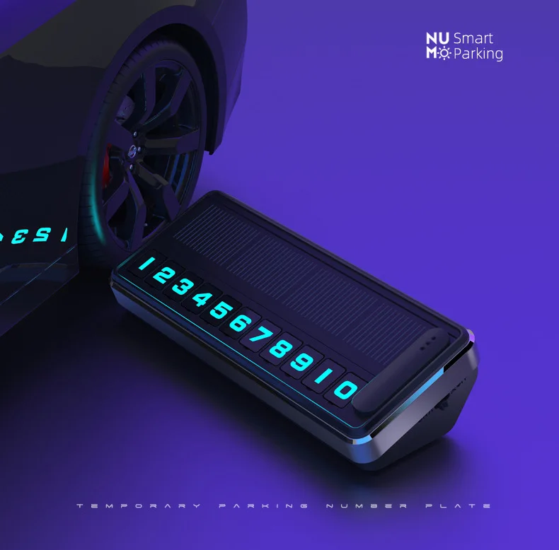 Солнечная Автомобильный номерной знак Светодиодное освещение Временная парковочная карта Скрытые таблички Стоп парковки Несколько номеров Парковочные гаджеты