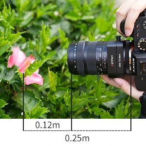 Этот объектив с максимальным расстоянием фокусировки 0,25 м и ближайшим рабочим расстоянием 0,12 м очень подходит для большинства работ по макросъемке.