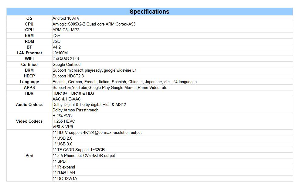 KM2 является сертифицированным Google TV Box и работает на ОС Android TV 10. Конечно, устройство поддерживает Google Assistant и встроенный Chromecast. Кроме того, он имеет важнейшие сертификаты ведущих вендоров: Google, Netflix, IVI, PrimeVideo, Youtube, Disney + и др. Потоковое устройство KM2 отображает потоковый контент до 4K при 60 кадрах в секунду также из других популярных потоковых сервисов, таких как Disney +, HBO и т. Д. Устройство поддерживает 4K HDR, HDR10 и Dolby Audio.