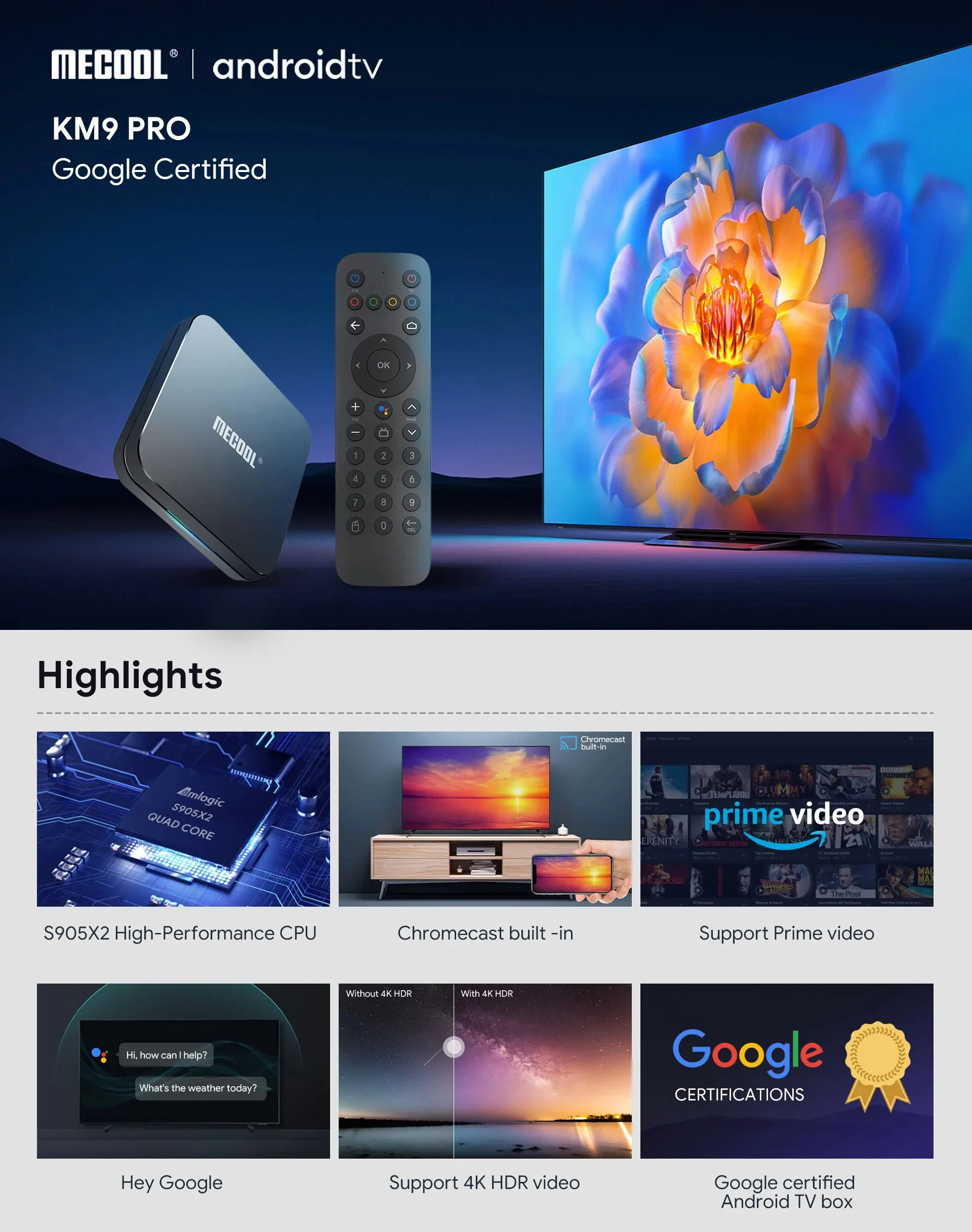-Поддержка Google Castand 4K HDR, потоковых фильмов, фотографий или игр в вашем смартфоне на большом экране