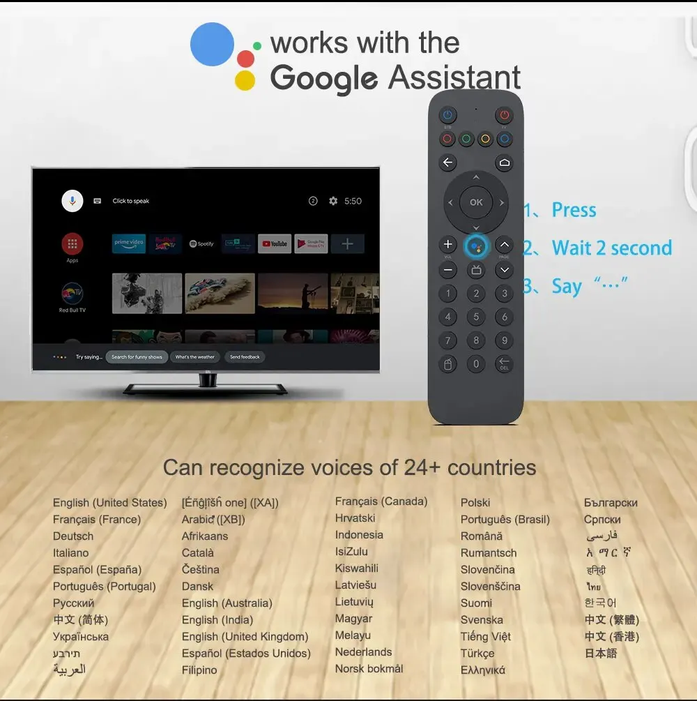 Пульт дистанционного управления работает с Google Assistant, когда пользователи говорят с ним, помощник будет делать то, что они просят.
