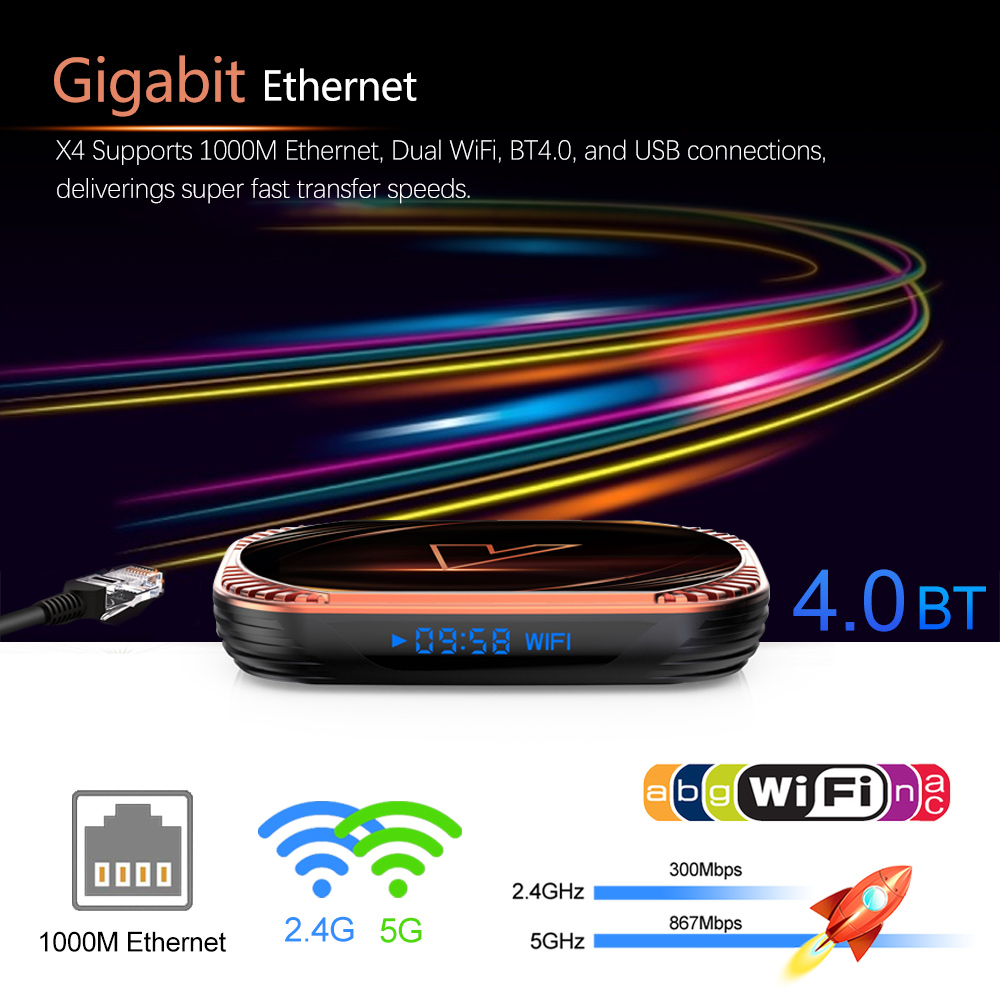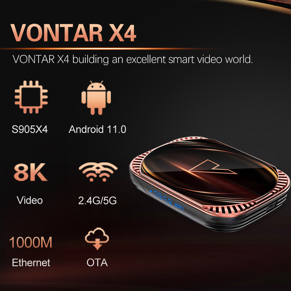 Телеприставка VONTAR X4, Amlogic S905X4 Max, 4-32/64/128 ГБ, 1000 Мбит/с, Android 11, комплектация в ассортименте