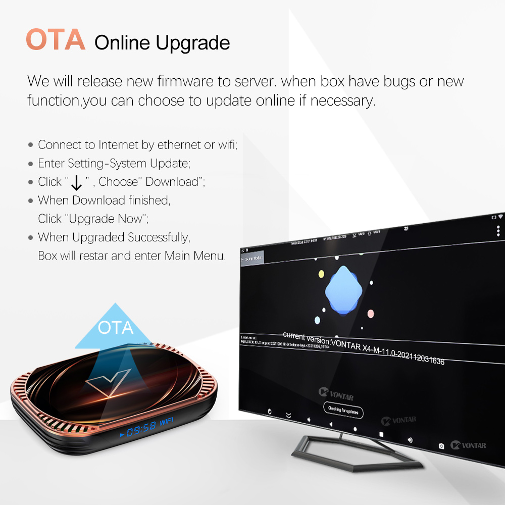 Коробка медиа-проигрывателя 32GB 64GB андроида 11 Amlogic S905X4 Макса 4GB 128GB 1000M двойного Wifi 4K 60fps AV1 коробки TV VONTAR X4 умная установленная верхняя